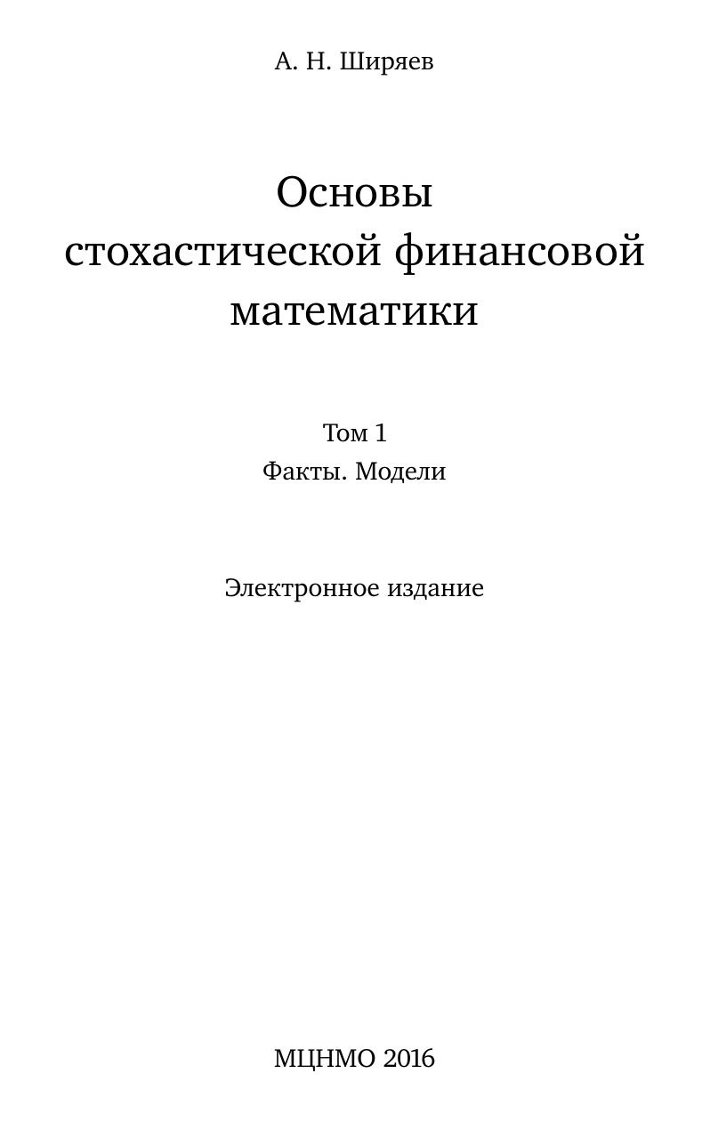 Основы стохастической финансовой математики: В 2 т. Т. 1: Факты, модели