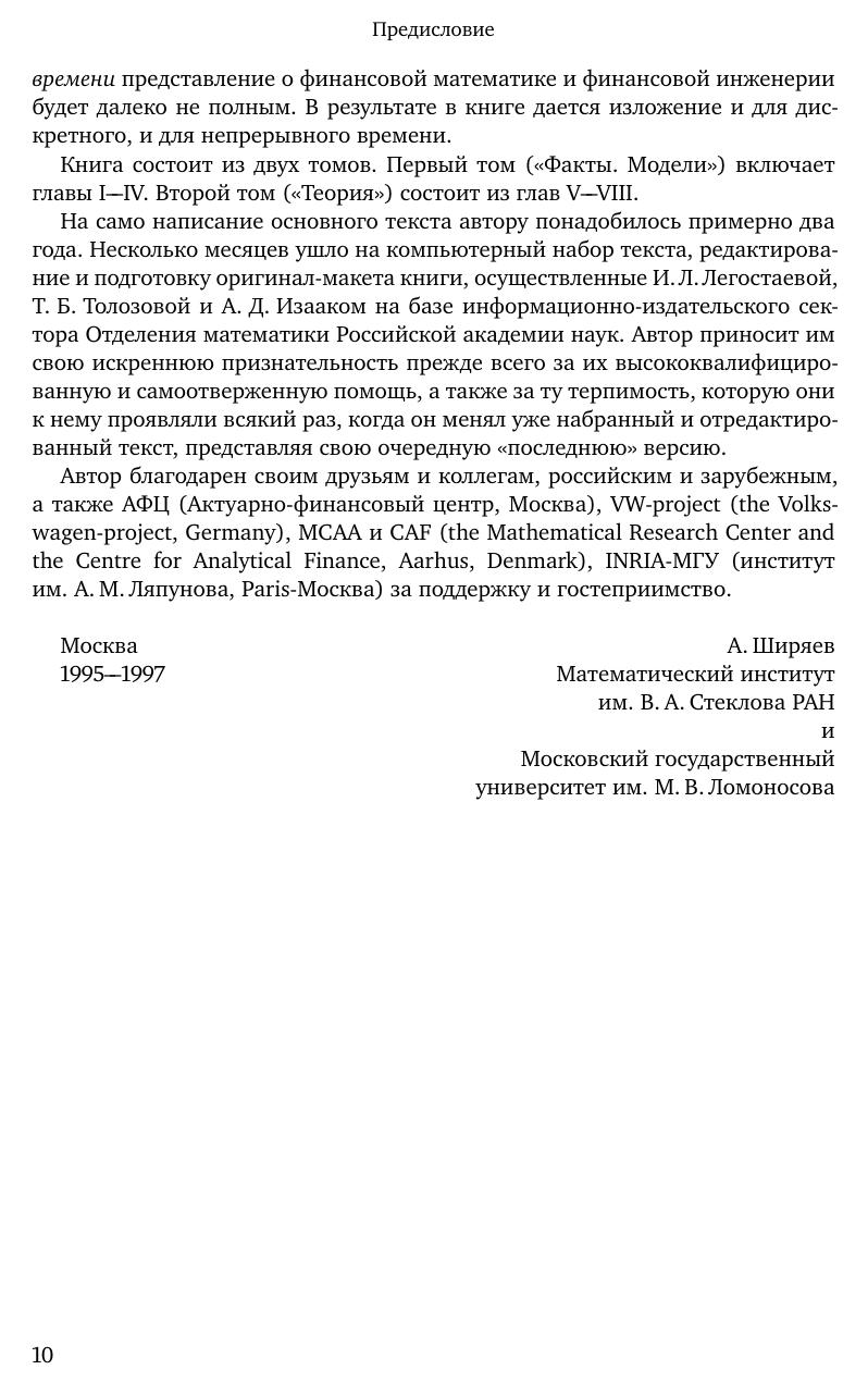 В первом томе основополагающей монографии одного из ведущих в мире специалистов по теории вероятностей, математической статистике, финансовой математике Альберта Николаевича Ширяева описаны ключевые объекты и структуры финансовых рынков, представлены разнообразные факты их реального функционирования, изложены основные положения ряда классических и неоклассических финансовых теорий, определены цели и задачи финансовой теории и финансовой инженерии, приведены стохастические модели динамики финансовых активов и показателей для дискретного и непрерывного времени.