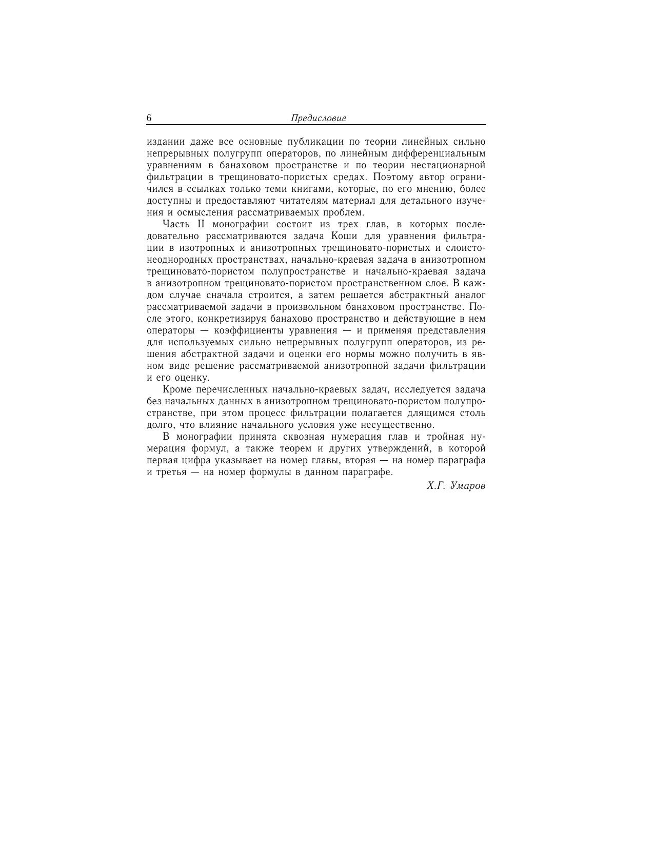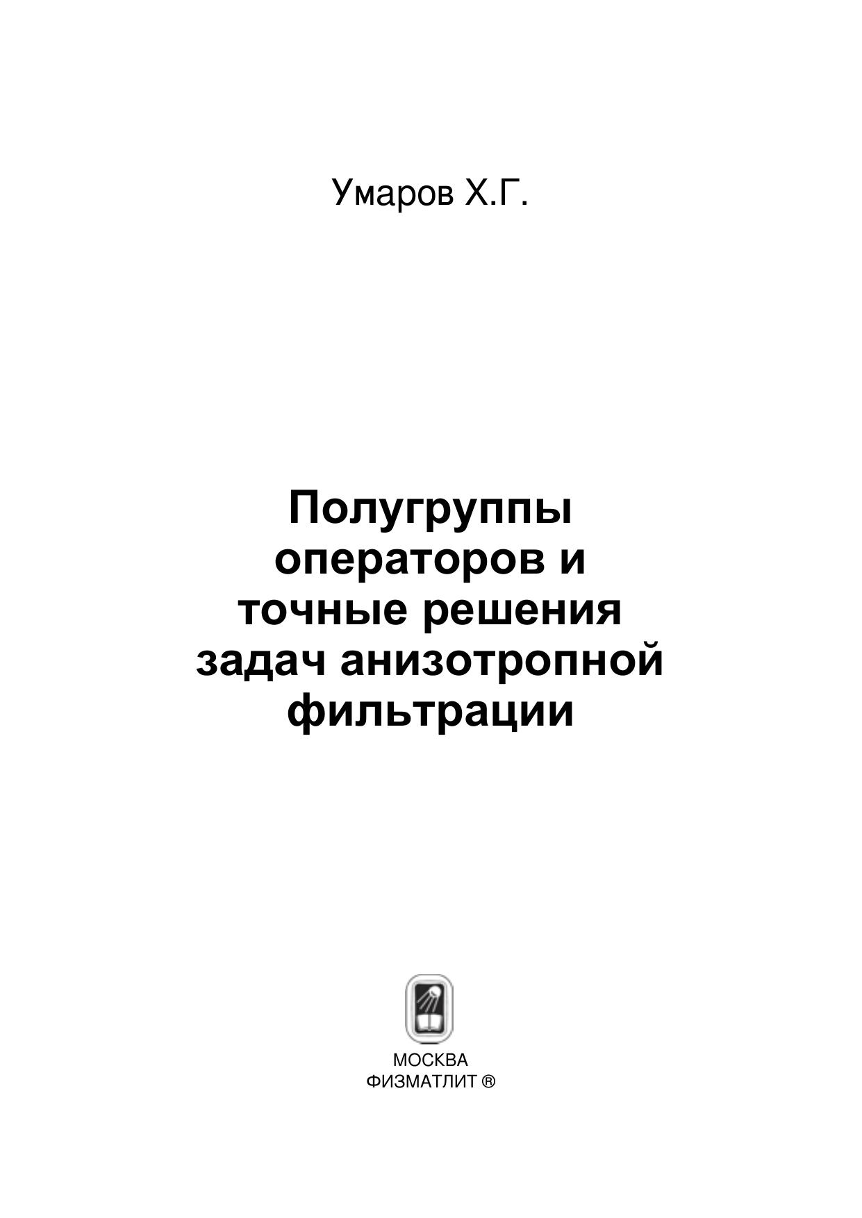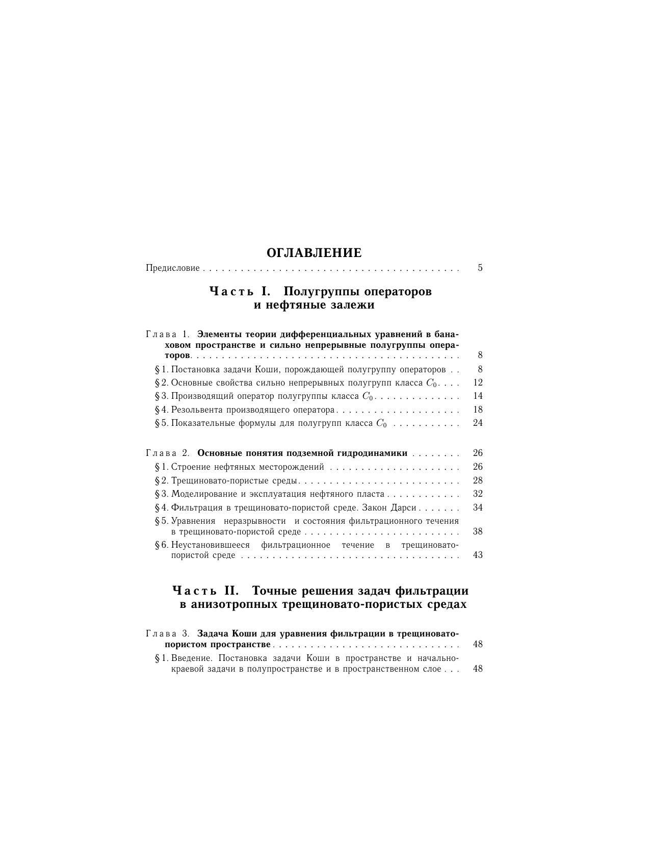В монографии найдены в явном виде решения уравнения неустановившейся фильтрации в анизотропном трещиновато-пористом пласте. В качестве вспомогательного материала изложены основы теории сильно непрерывных полугрупп линейных операторов в банаховых пространствах и теории нестационарной фильтрации в трещиновато-пористых средах. Предназначена студентам, аспирантам и преподавателям математических факультетов вузов, а также специалистам, занимающимся задачами нестационарной фильтрации в трещиновато-пористых средах.