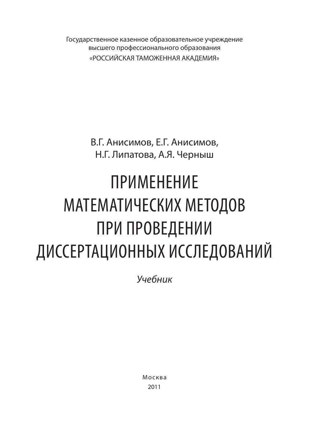 Применение математических методов при проведении диссертационных исследований: учебник