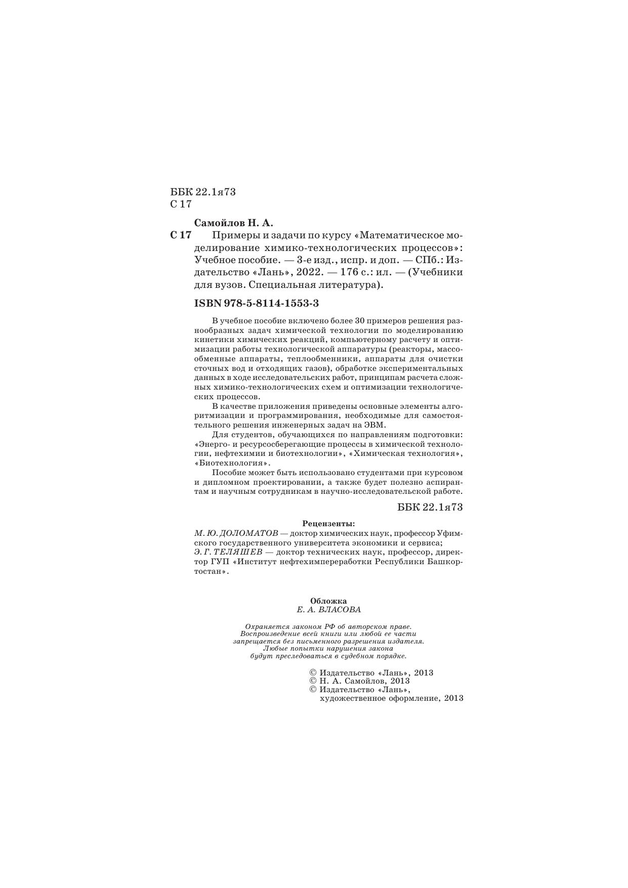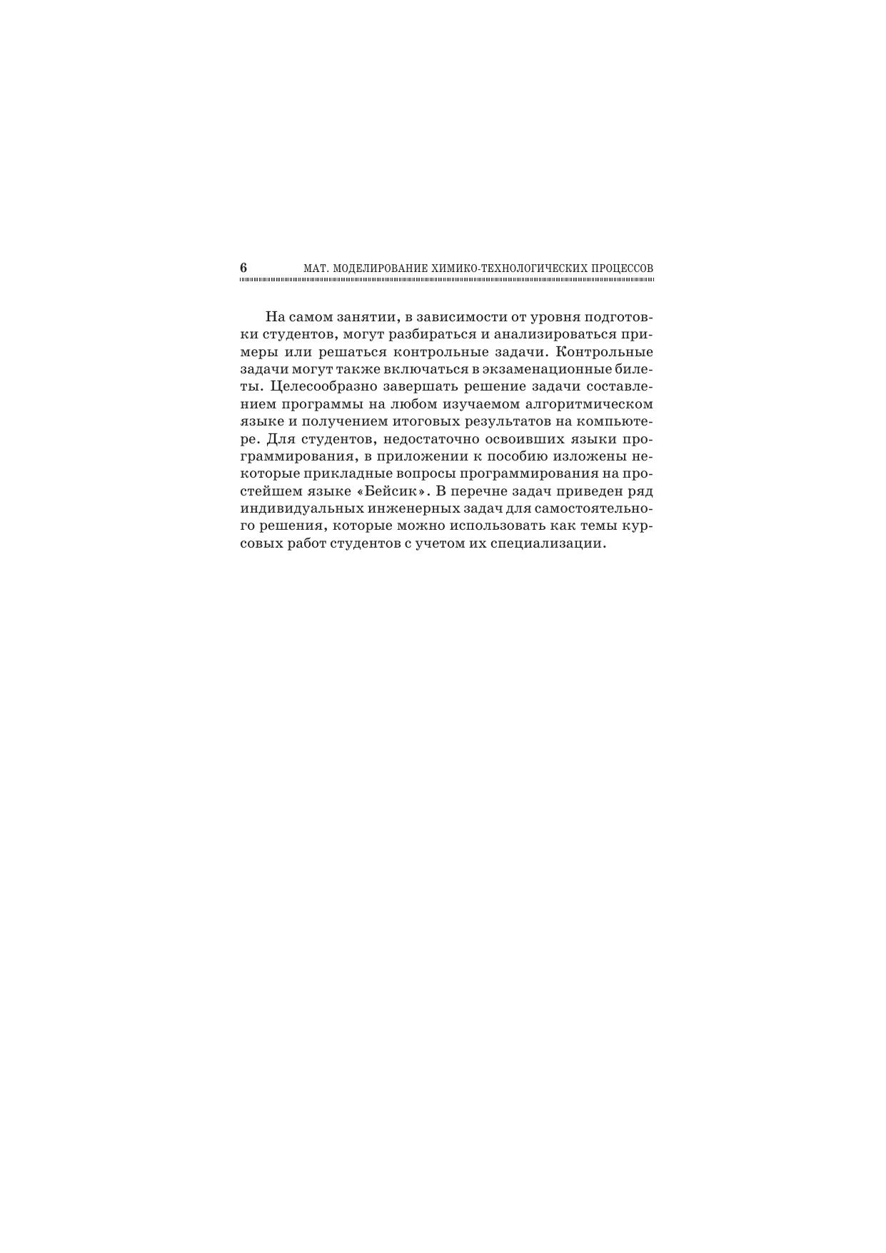 В учебное пособие включено более 30 примеров решения разнообразных задач химической технологии по моделированию кинетики химических реакций, компьютерному расчету и оптимизации работы технологической аппаратуры (реакторы, массообменные аппараты, теплообменники, аппараты для очистки сточных вод и отходящих газов), обработке экспериментальных данных в ходе исследовательских работ, принципам расчета сложных химико-технологических схем и оптимизации технологических процессов. В качестве приложения приведены основные элементы алгоритмизации и программирования, необходимые для самостоятельного решения инженерных задач на ЭВМ. Для студентов, обучающихся по направлениям подготовки: «Энерго- и ресурсосберегающие процессы в химической технологии, нефтехимии и биотехнологии», «Химическая технология», «Биотехнология». Пособие может быть использовано студентами при курсовом и дипломном проектировании, а также будет полезным аспирантам и научным сотрудникам в научно-исследовательской работе.