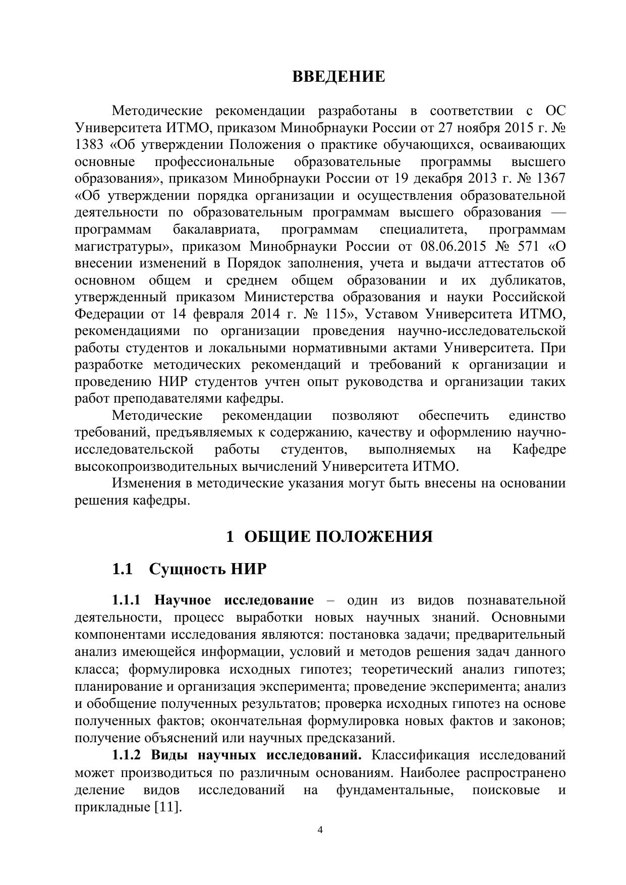 Учебно-методическое пособие описывает порядок организации и выполнения научно-исследовательской работы студентов на кафедре, требования к содержанию и оформлению отчета, а так же порядок и критерии оценивания. Учебно-методическое пособие предназначено студентам кафедры высокопроизводительных вычислений очной формы, обучающихся по направлению 01.04.02 - Прикладная математика и информатика; руководителям научно-исследовательской работы студентов