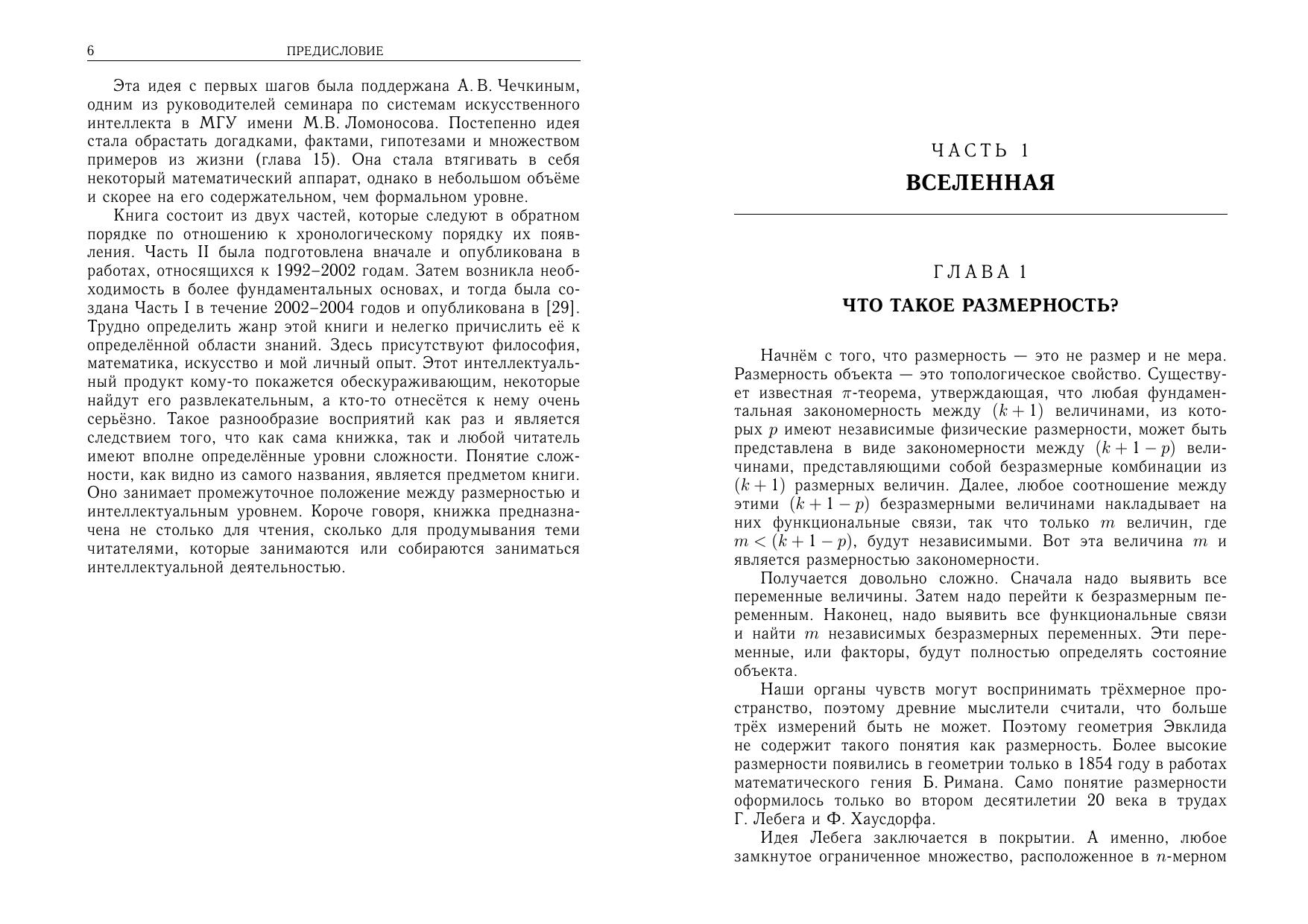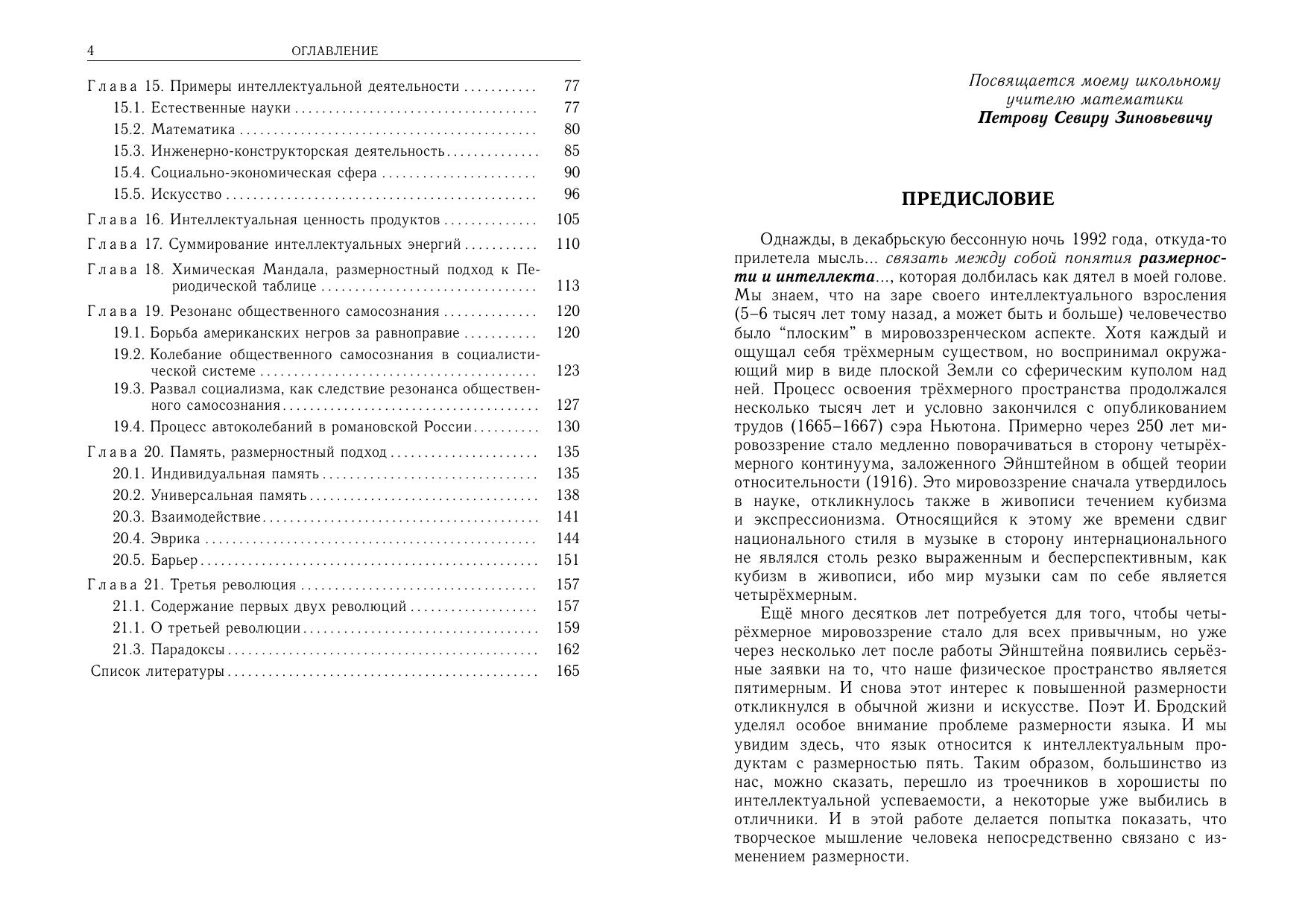 В монографии рассматриваются концептуальные понятия материи, пространства, времени и сложности с позиций теории математической размерности. Предлагаются эвристические зависимости для расчета количественных характеристик творческой деятельности как функции трех независимых размерностей. Изложение сопровождается многочисленными примерами из различных областей интеллектуальной деятельности: химии, математики, инженерно-конструкторской деятельности, социально-экономической сферы, искусства. В последних главах демонстрируются возможности размерностного подхода к проблеме синтеза современной структуры для множества химических элементов, а также к проблеме анализа процесса автоколебаний общественного сознания. Рассчитана на преподавателей и студентов как естественно-научных, так и социально-общественных вузов.