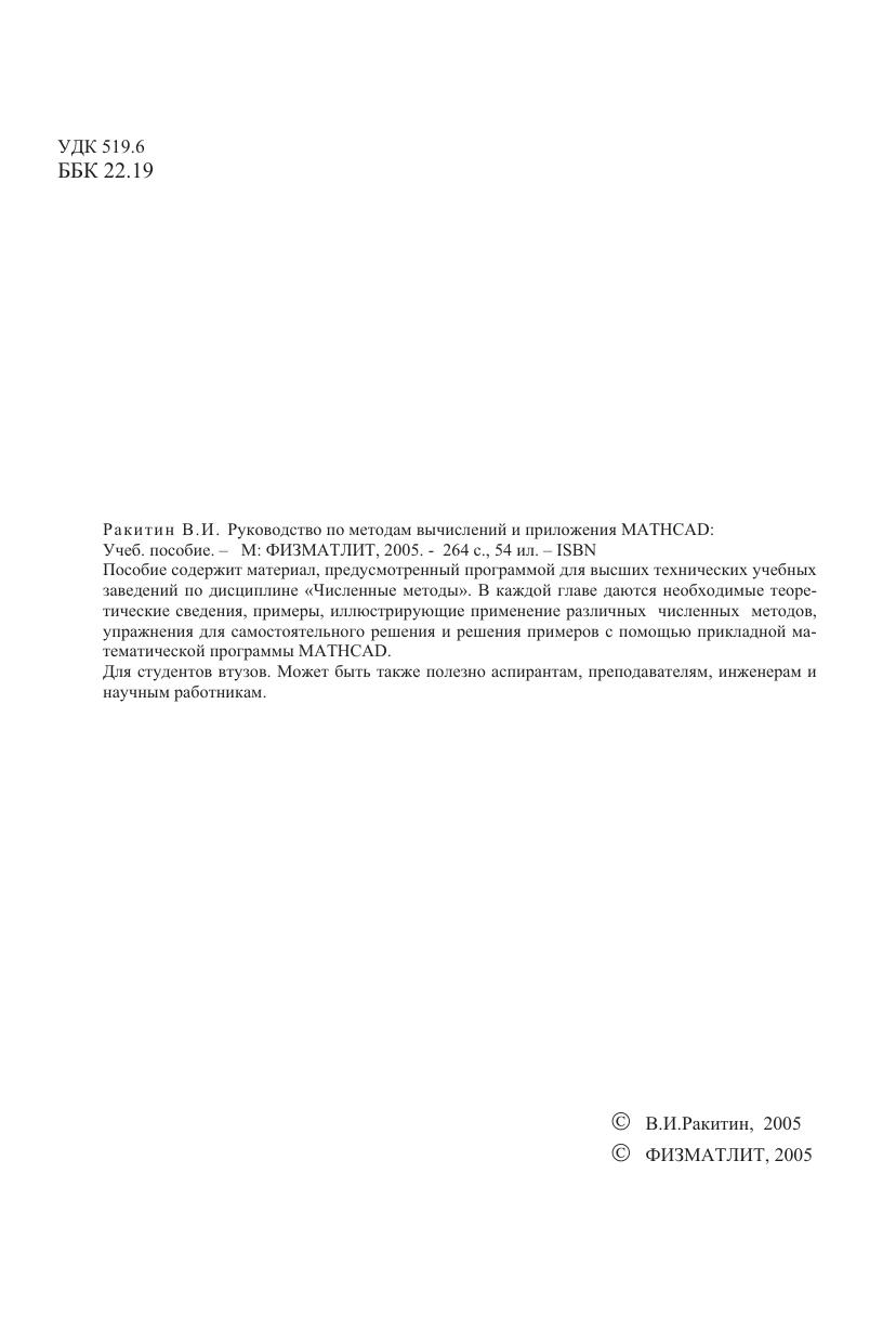 Руководство по методам вычислений и приложения MATHCAD