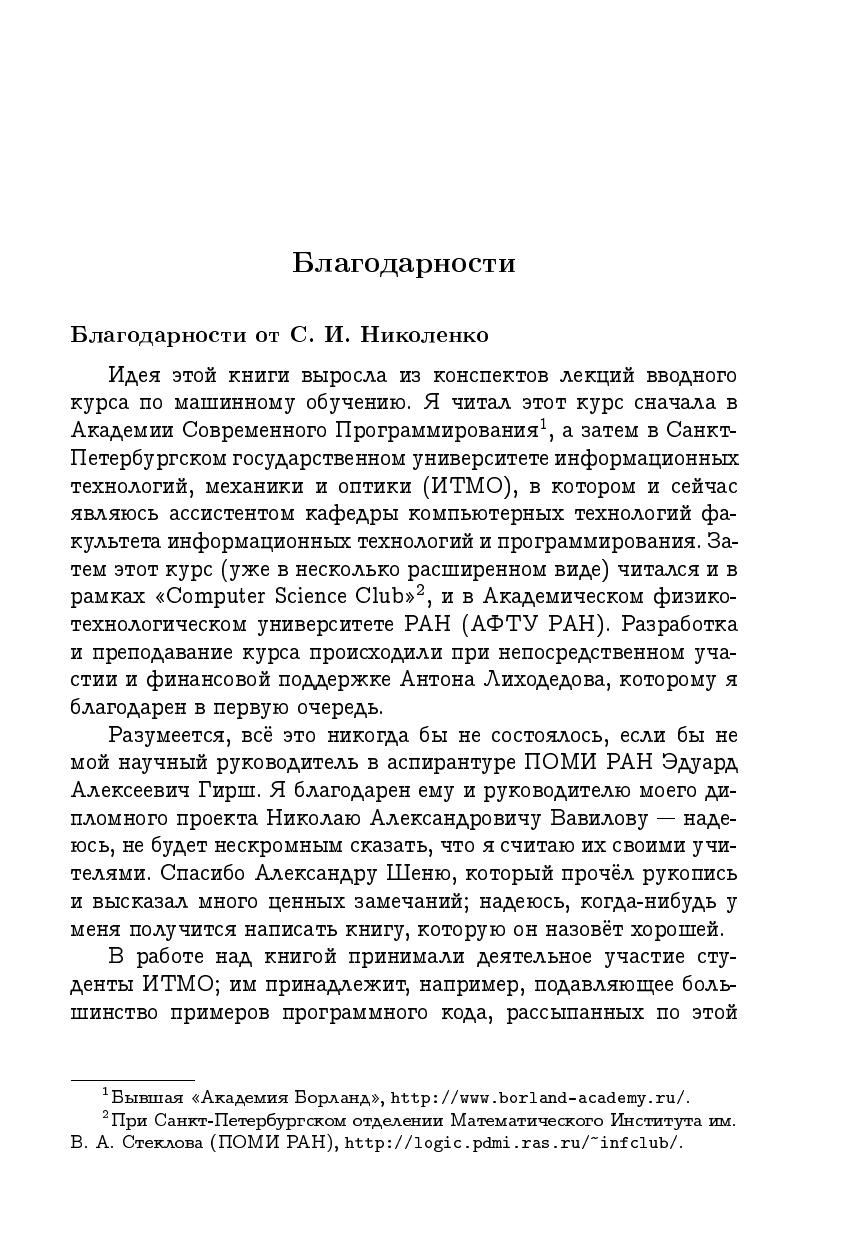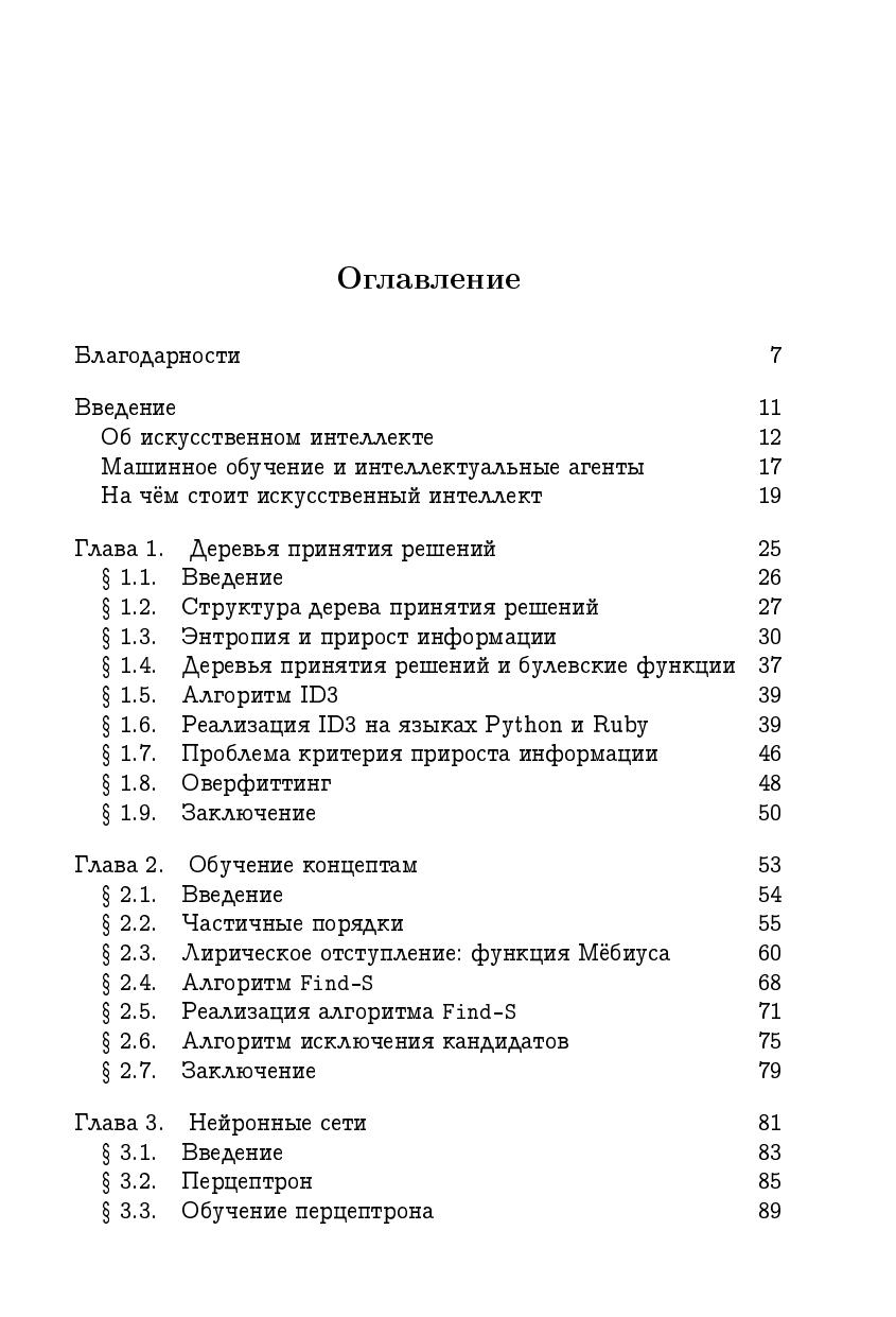 Книга посвящена одной из самых практически применимых, активных и быстроразвивающихся областей современной информатики, объединяющей множество методов из различных областей математики и не только математики — машинному обучению. В книге обсуждаются основы многих базовых аппаратов машинного обучения: деревья принятия решений, искусственные нейронные сети, генетические алгоритмы, байесовские классификаторы, алгоритмы кластеризации и обучение с подкреплением. Изложение ведётся увлекательным языком, книгу интересно читать, и она доступна даже не очень подготовленному читателю. Однако при этом сохраняется математическая строгость, а наиболее сложные части изложения заинтересуют и профессионалов. Книга снабжена обширной аннотированной библиографией.Читать книгу смогут даже старшеклассники, хотя она будет представлять несомненный профессиональный интерес и для студентов всех курсов, изучающих математику и информатику, а также для специалистов и аспирантов, ведущих исследования в соответствующих областях. В этом отношении значительная часть материала монографии сможет сыграть роль углублённого учебного пособия.