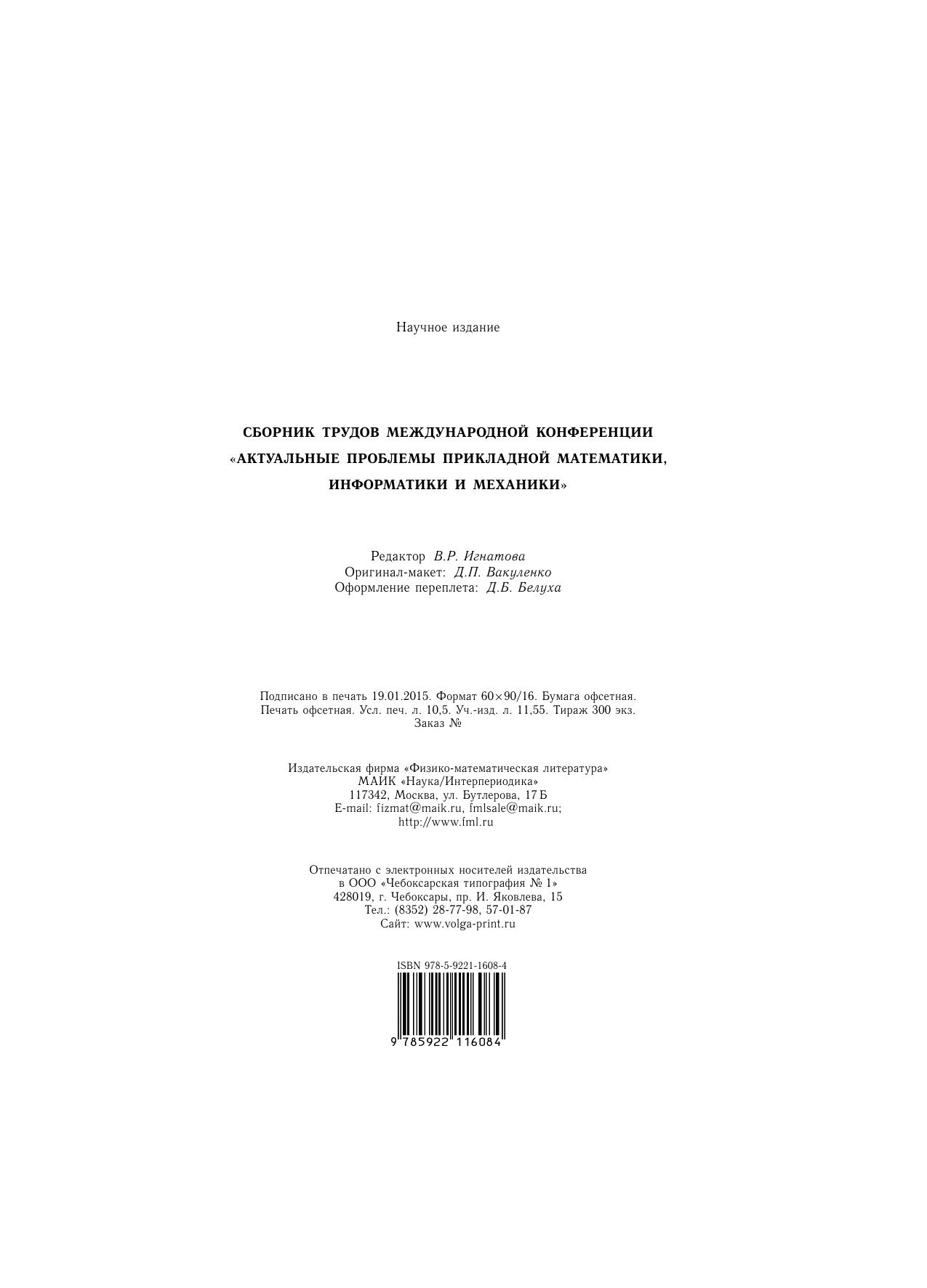 В сборнике предлагаются научные работы, доклады и лекции, представленные на Международной конференции «Актуальные проблемы математики, информатики и механики», проведенной Воронежским государственным университетом 12–14 декабря 2013 года.