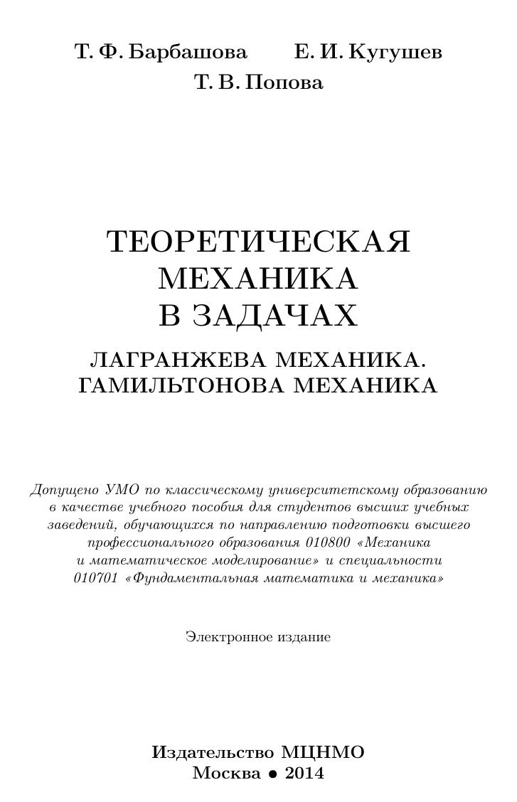 Гриф: Допущено УМО по классическому университетскому образованию в качестве учебного пособия для студентов высших учебных заведений, обучающихся по направлению подготовки высшего профессионального образования 010800 «Механика и математическое моделирование» и специальности 010701 «Фундаментальная математика и механика»