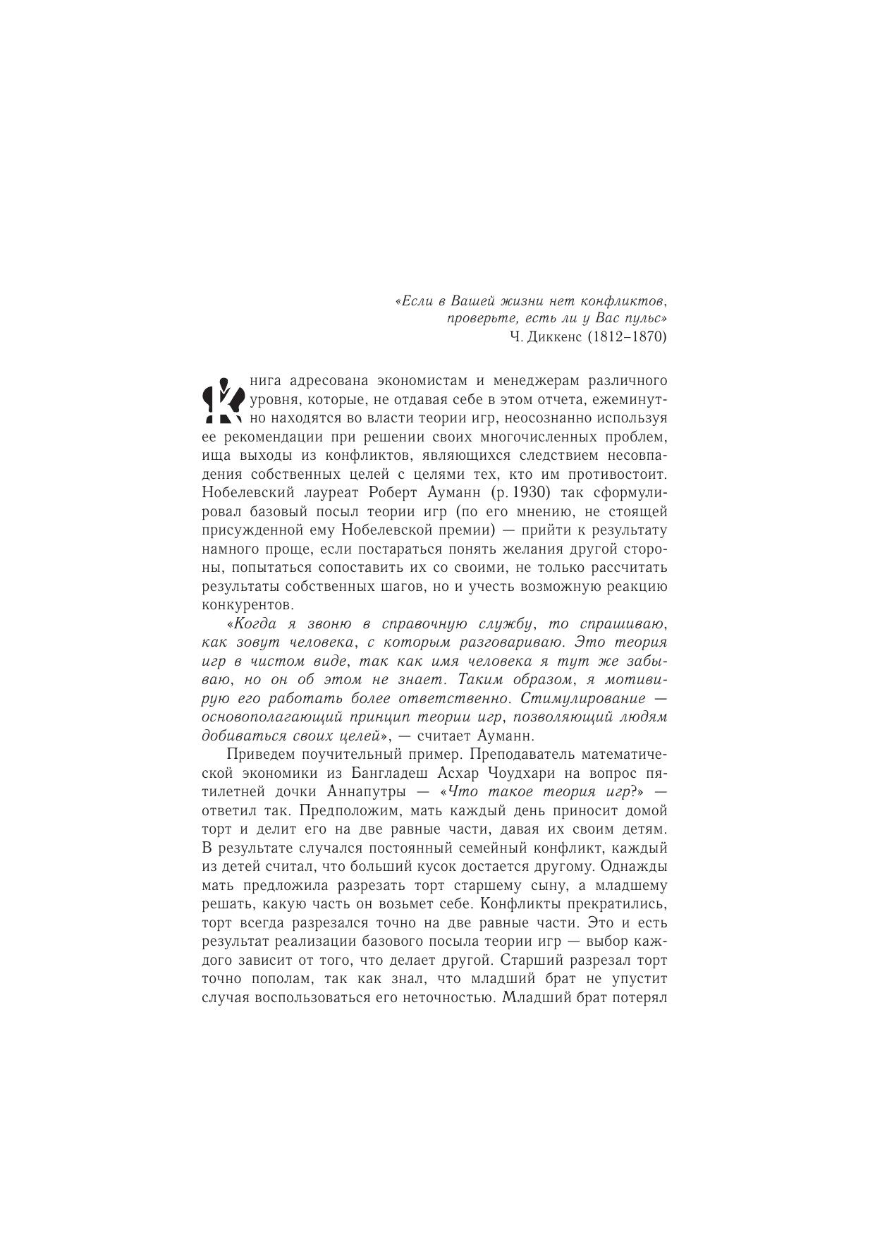 Авторы исходили из запросов и возможностей практиков — экономистов и менеджеров реального сектора экономики и техники. Этим определялась глубина вторжения в недра теории игр, весьма математизированной науки. Авторы предпочли сделать это в доступной форме, не перегружая текст сложными математическими пассажами. Логико-математические выкладки чередуются с историческими примерами, литературными аналогиями и просто занимательными историями, что позволит читателю знакомиться с основами теории игр, постигая, прежде всего, смысловое содержание последних.