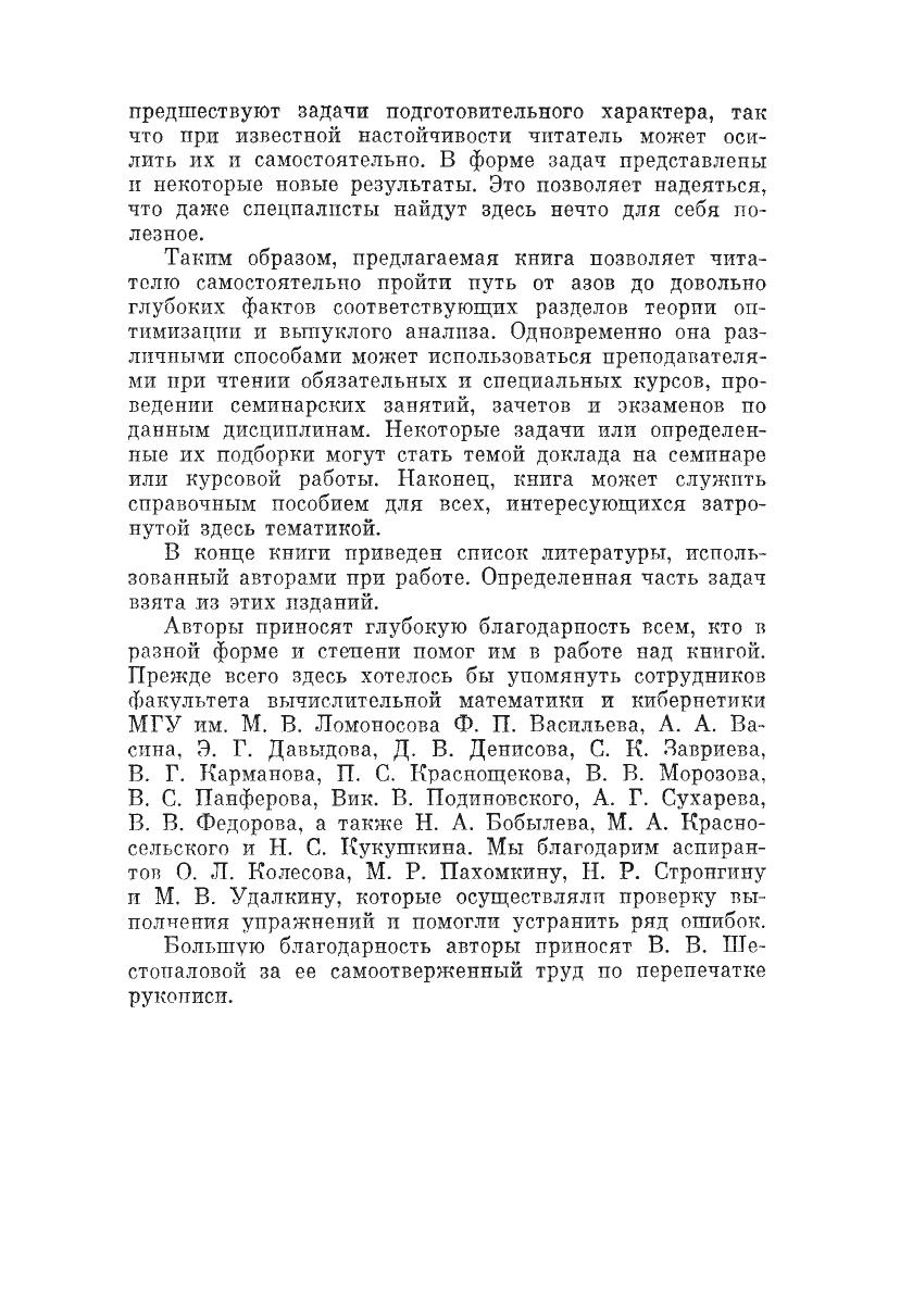 Учебное пособие содержит более 90 упражнений и 780 задач для самостоятельной работы в процессе изучения классических разделов теории оптимизации, линейного программирования и теории выпуклых множеств. Каждое упражнение представлено 20 вариантами, с тем чтобы обеспечить студентов одной группы индивидуальными заданиями. Практически все задачи снабжены ответами, указаниями или решениями. Каждый параграф начинается со сводки основных фактов, доказательства которых также приведены в книге. Пособие предназначено для студентов, аспирантов и преподавателей, специализирующихся по теории оптимизации и выпуклому анализу.