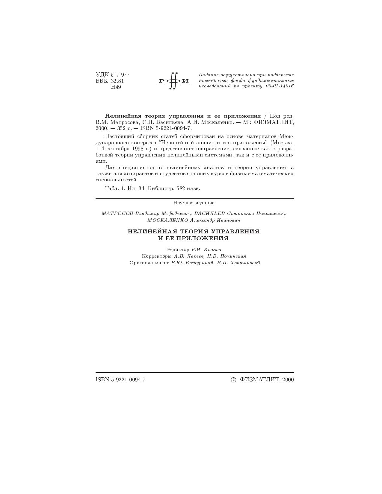 Настоящий сборник статей сформирован на основе материалов Международного конгресса «Нелинейный анализ и его приложения» (Москва, 1-4 сентября 1998 г.) и представляет направление, связанное как с разработкой теории управления нелинейными системами, так и с ее приложениями. Для специалистов по нелинейному анализу и теории управления, а также для аспирантов и студентов старших курсов физико-математических специальностей