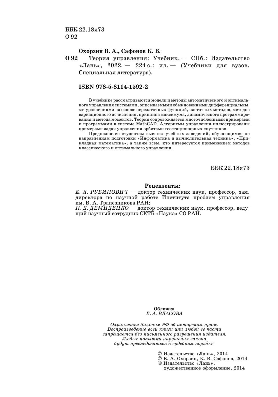 В учебнике рассматриваются модели и методы автоматического и оптимального управления системами, описываемыми обыкновенными дифференциальными уравнениями на основе передаточных функций, частотных методов, методов вариационного исчисления, принципа максимума, динамического программирования и метода моментов. Теория сопровождается многочисленными примерами и программами в системе MathCAD, делающей в электронной версии «живые» формулы. Алгоритмы управления иллюстрированы примерами задач управления орбитами геостационарных спутников. Предназначен для студентов высших учебных заведений, обучающихся по направлению «Информатика и вычислительная техника», специальности «Прикладная математика», а также всем, кто интересуется применением методов классического и оптимального управления.