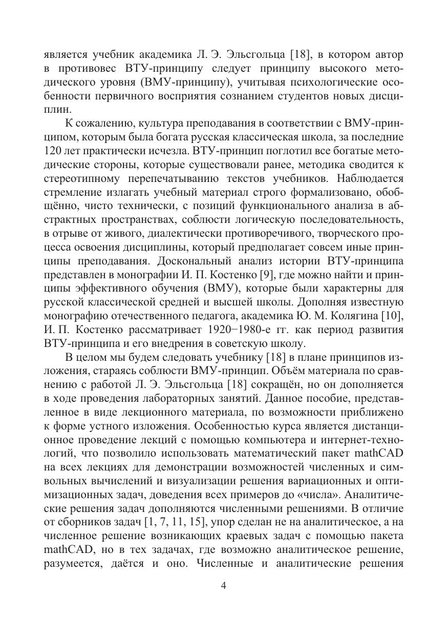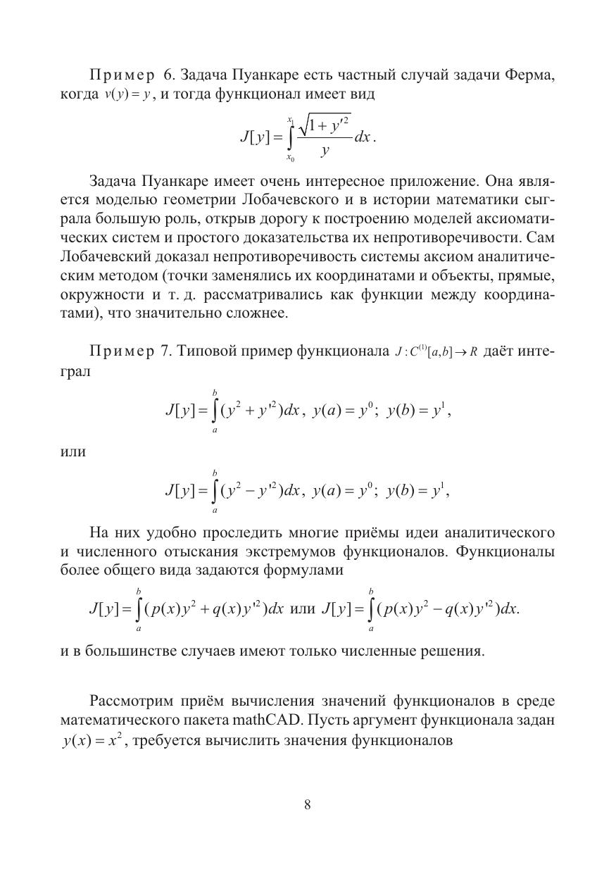 Изложены теория и методы решения различных вариационных задач с иллюстрациями аналитического и численного способов их решения. Упор сделан на численные решения с помощью математического пакета mathCAD. Все решения задач доведены до «числа». В приложениях приводятся алгоритмы и программы. В основу положены лекции, которые читались автором на факультете компьютерных технологий и прикладной математики.