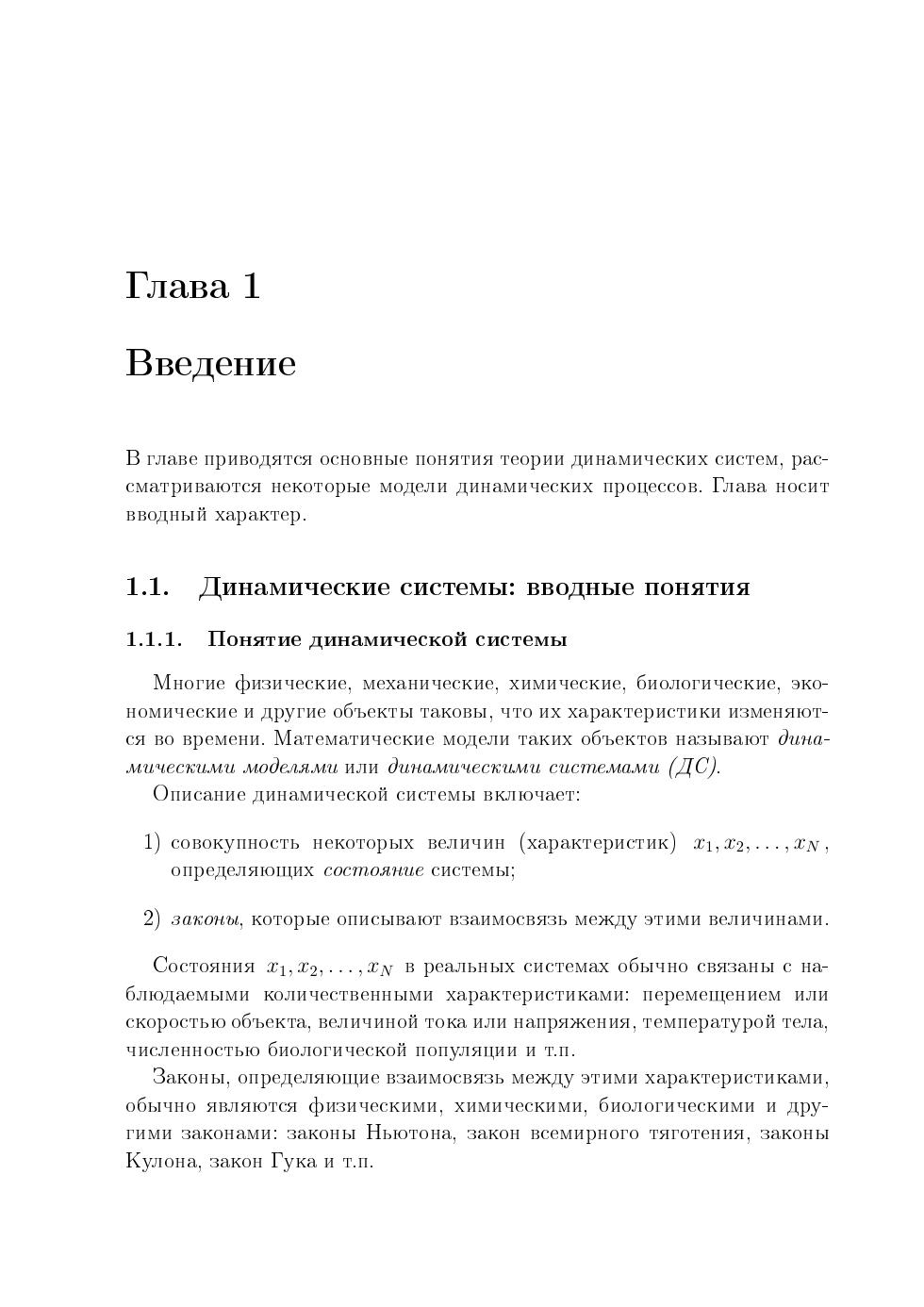 Учебное пособие представляет собой вводный курс в теорию динамических систем и нелинейную динамику. В нем излагаются теоретические сведения, а также методы и приемы исследования динамических систем, лежащих в основе современной нелинейной динамики. Рассматриваются системы с дискретным временем, описываемые разностными уравнениями, и системы с непрерывным временем, описываемые автономными дифференциальными уравнениями. Значительное место в пособии уделено обсуждению различных приложений и анализу ряда моделей нелинейной динамики. Выбор и анализ моделей определялся как их свойствами, представляющими научный и практический интерес, так и тем, что они дают замечательные иллюстрации основных понятий и методов современной нелинейной динамики. Существенным достоинством пособия является наличие большого числа примеров, а также задач и упражнений, органически связанных с основным изложением. Пособие предназначено для студентов вузов, обучающихся по математическим, физико-математическим и техническим специальностям, в первую очередь, по направлениям подготовки «Прикладная математика и информатика», «Математика», «Математика и компьютерные науки», «Прикладная математика», «Прикладная информатика», «Механика».