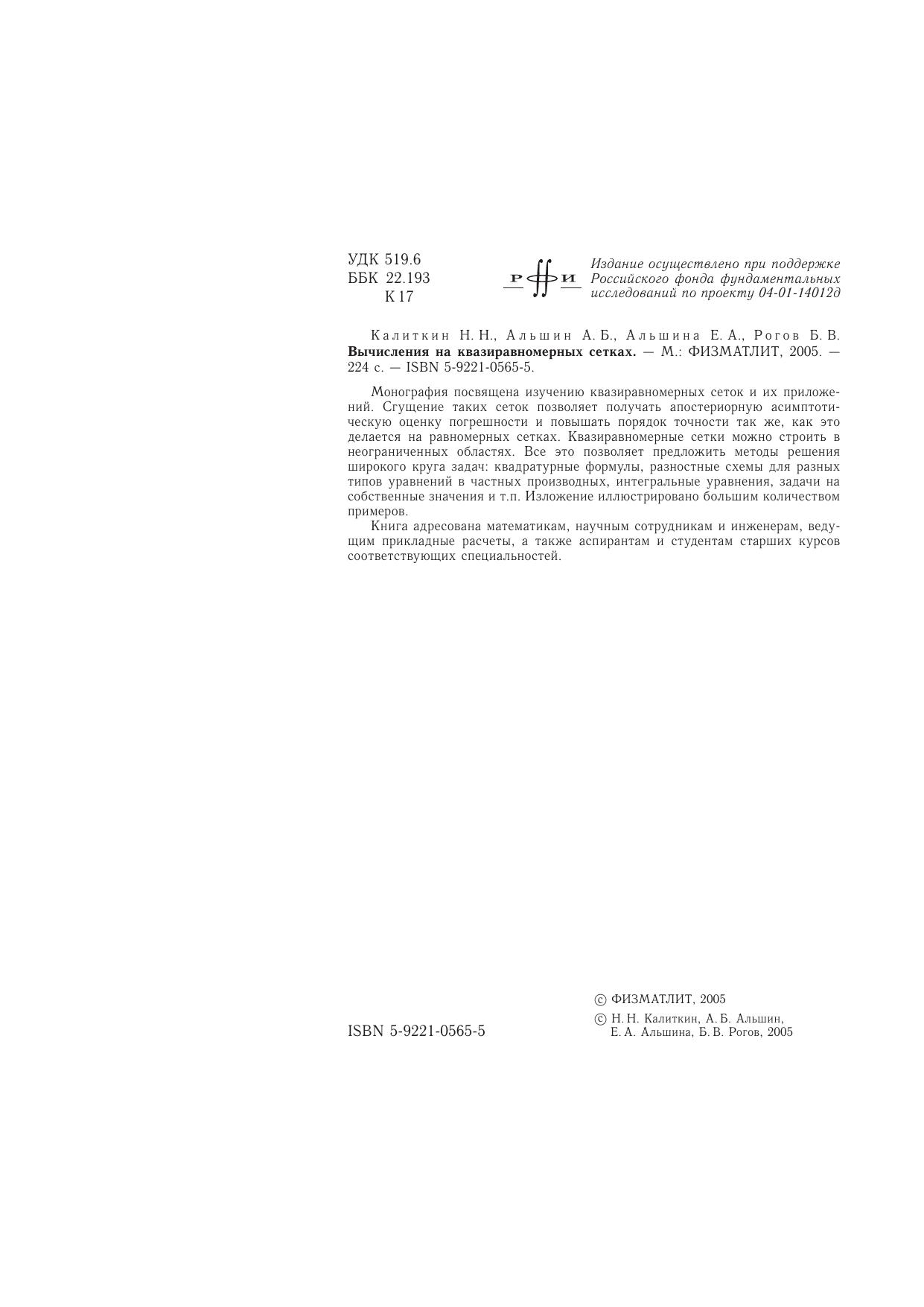 Авторы: Калиткин Н.Н., Альшин А.Б., Альшина Е.А., Рогов Б.В.