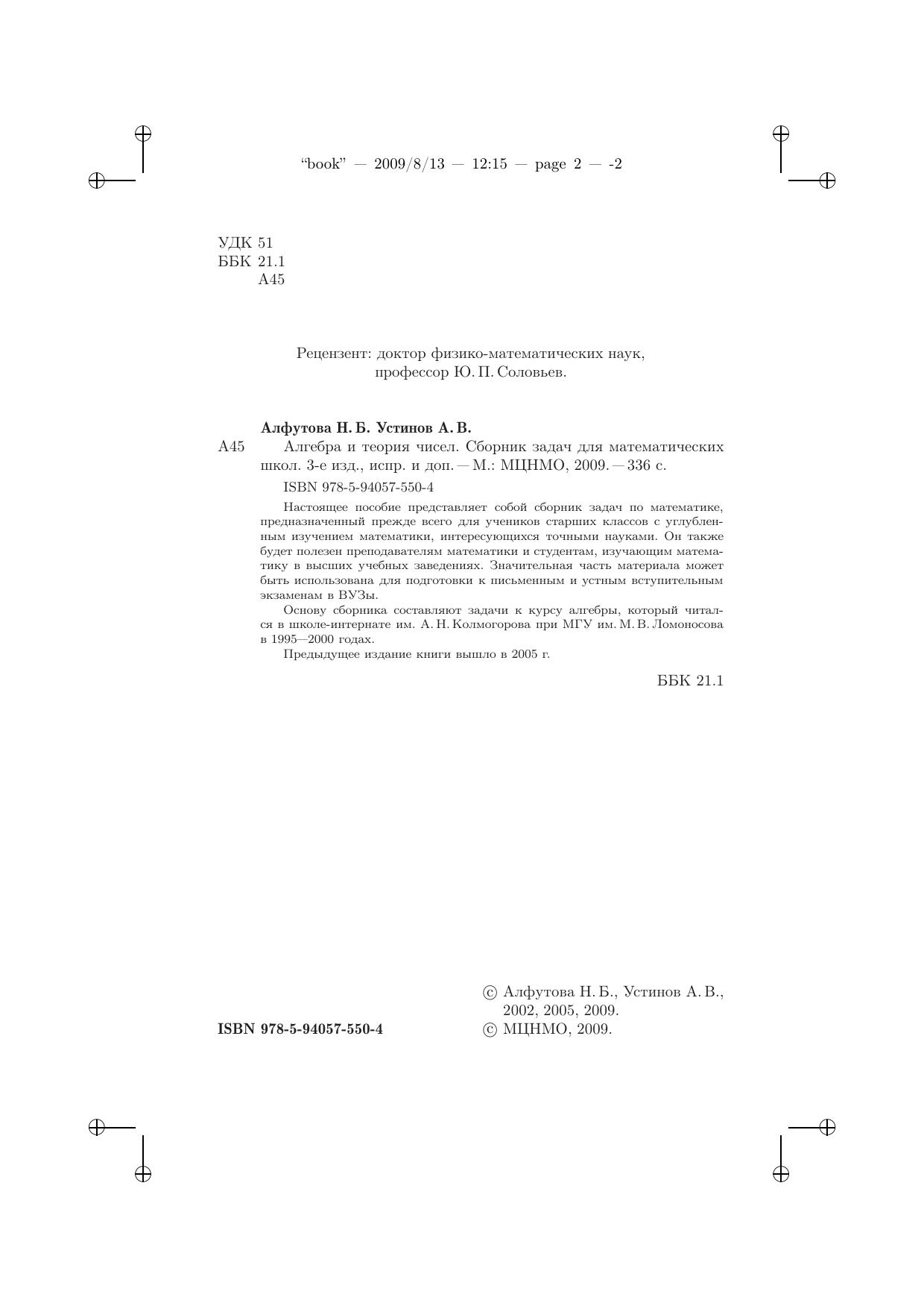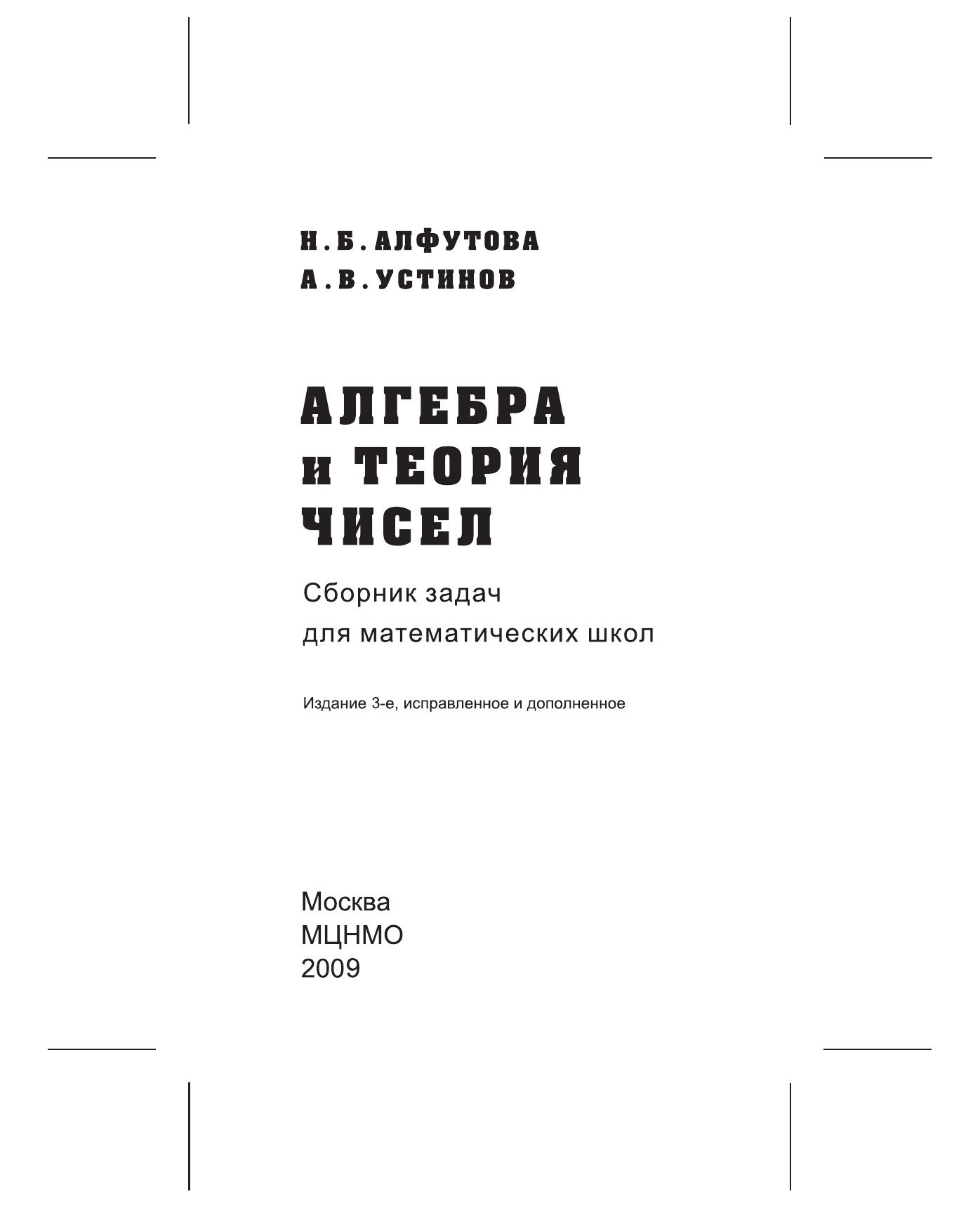 Настоящее пособие представляет собой сборник задач по математике, предназначенный прежде всего для учеников старших классов с углубленным изучением математики, интересующихся точными науками. Он также будет полезен преподавателям математики и студентам, изучающим математику в высших учебных заведениях. Значительная часть материала может быть использована для подготовки к письменным и устным вступительным экзаменам в ВУЗы. Основу сборника составляют задачи к курсу алгебры, который читался в школе-интернате им. А.Н.Колмогорова при МГУ им. М.В.Ломоносова в 1995-2000 годах.