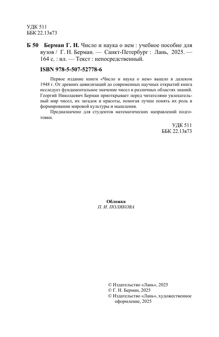 Первое издание книги «Число и наука о нем» вышло в далеком 1948 г. От древних цивилизаций до современных научных открытий книга исследует фундаментальное значение чисел в различных областях знаний. Георгий Николаевич Берман приоткрывает перед читателями увлекательный мир чисел, их загадок и красоты, помогая лучше понять их роль в формировании мировой культуры и мышления. Предназначено для студентов математических направлений подготовки.