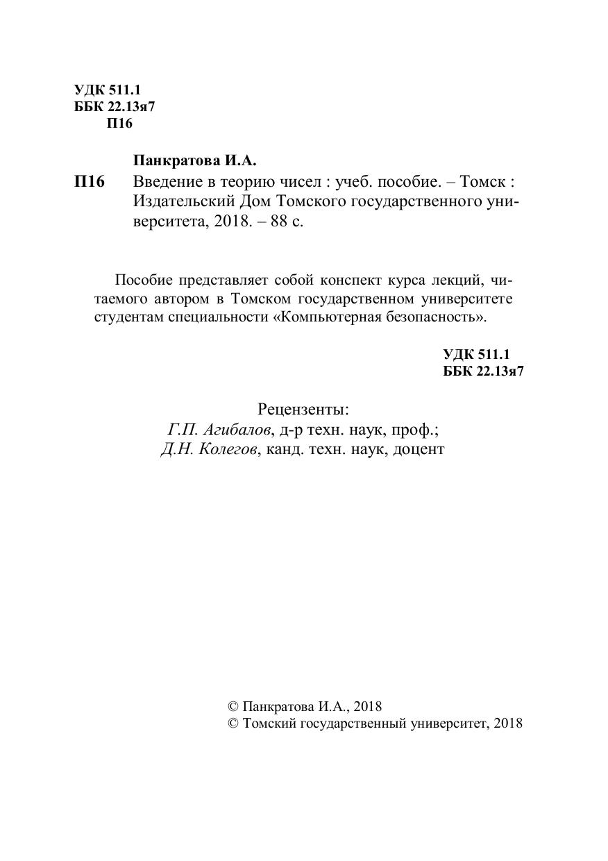Введение в теорию чисел