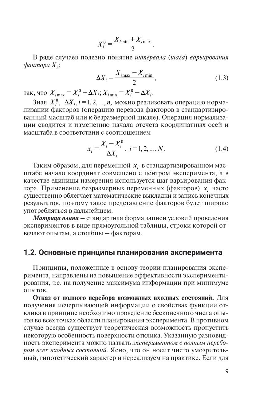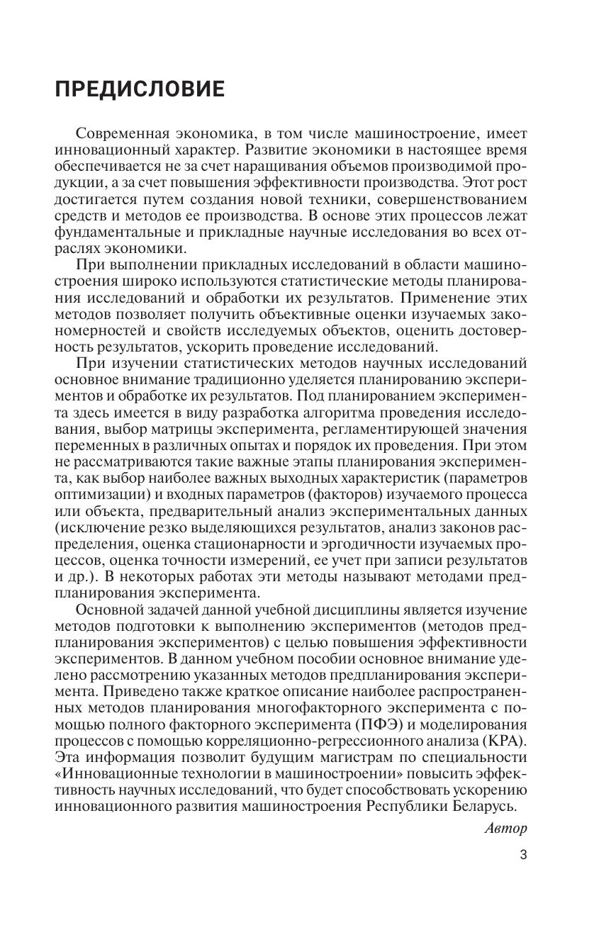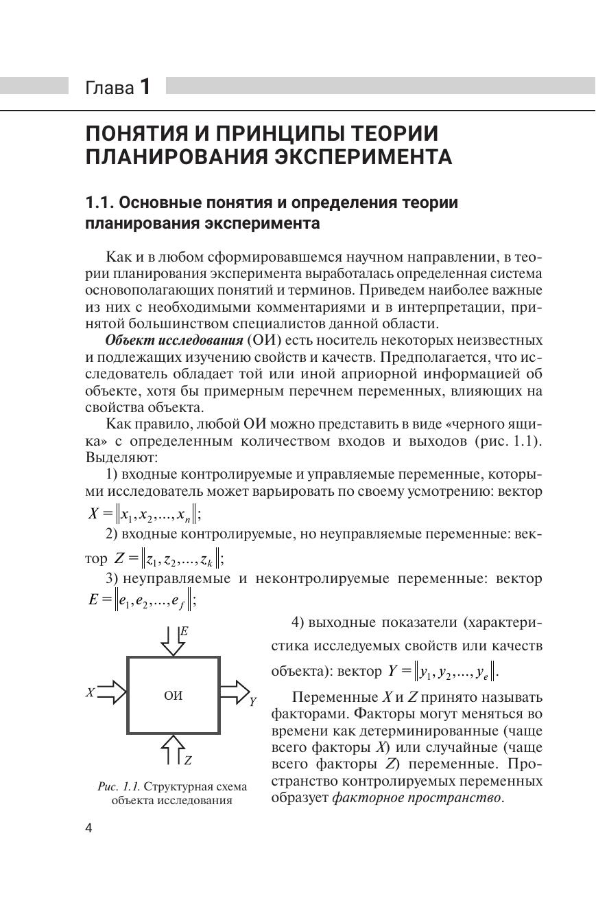 Приведены основные понятия и принципы планирования эксперимента, его виды и задачи, цели и методы выбора условий выполнения одно- и многофакторных экспериментов, пути сокращения числа параметров оптимизации в многофакторном эксперименте. Описаны методы выбора основных факторов, влияющих на изучаемый объект, с помощью экспертной оценки роли рассматриваемых факторов, дисперсионного анализа, путем применения насыщенных и сверхнасыщенных планов эксперимента. Представлены методы дихотомии, Фибоначчи и золотого сечения поиска области значений фактора, при которых функция приобретает экстремальные значения. Рассмотрены методы предварительного анализа и уточнения исходных данных; получения эмпирических зависимостей; основные понятия, задачи, предпосылки, способы реализации и проверки достоверности результатов корреляционно-регрессионного анализа и полного факторного эксперимента.