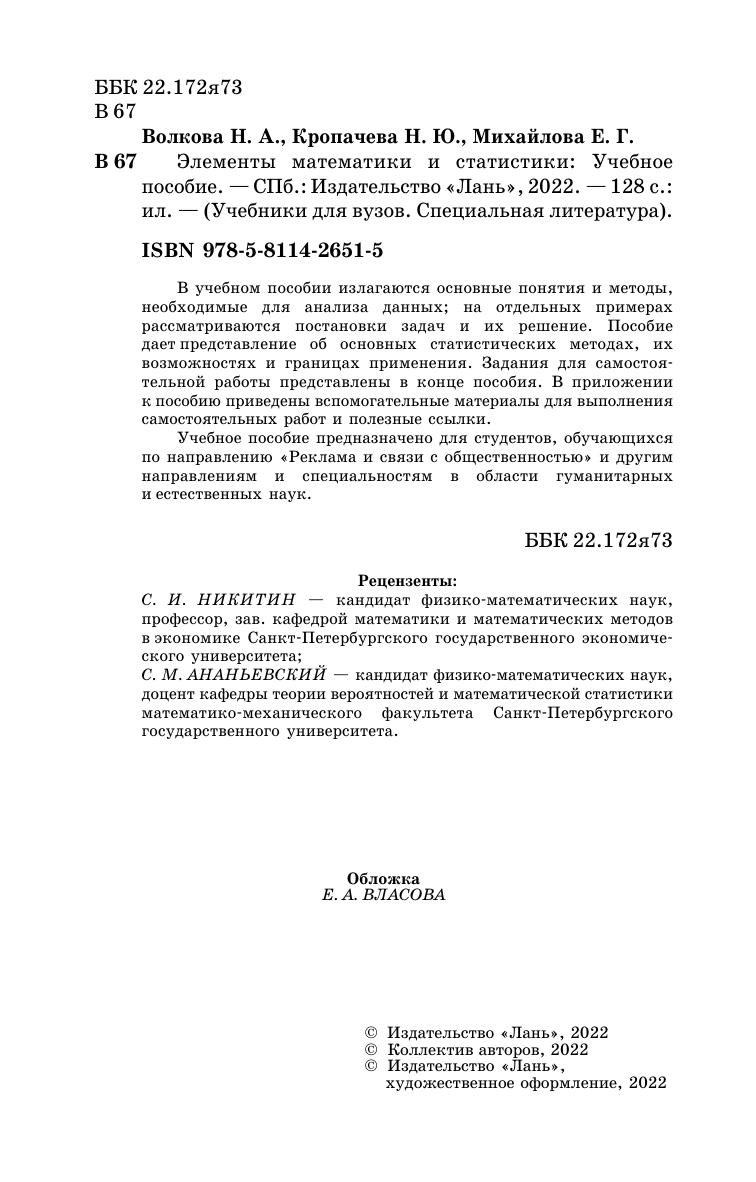 В учебном пособии излагаются основные понятия и методы, необходимые для анализа данных, на отдельных примерах рассматриваются постановки задач и их решение. Пособие дает представление об основных статистических методах, их возможностях и границах применения. Задания для самостоятельной работы представлены в конце пособия. В приложении к пособию приведены вспомогательные материалы для выполнения самостоятельных работ и полезные ссылки. Учебное пособие предназначено для студентов, обучающихся по направлению «Реклама и связи с общественностью» и другим направлениям и специальностям в области гуманитарных и естественных наук.
