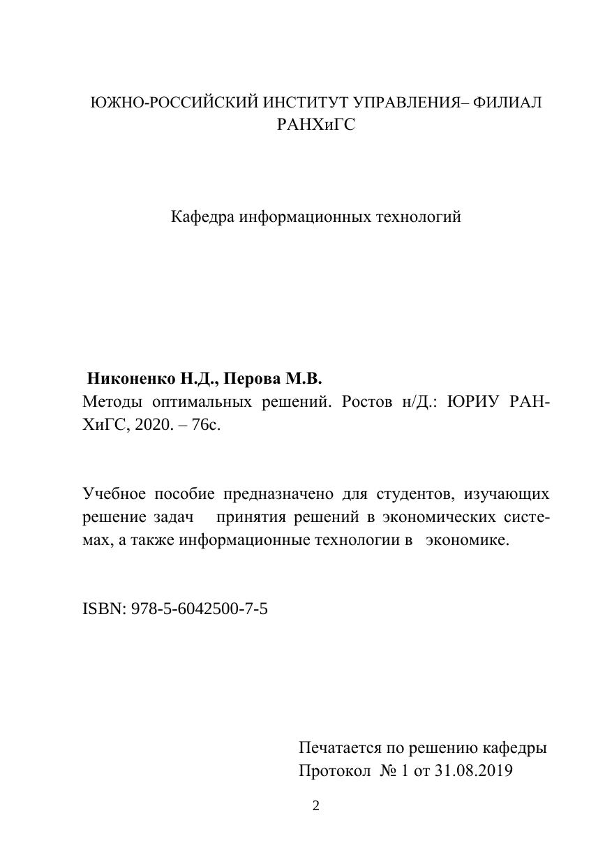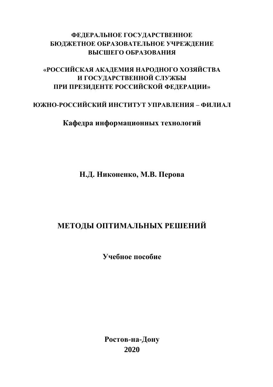 Учебное пособие предназначено для студентов, изучающих решение задач принятия решений в экономических систе-мах, а также информационные технологии в экономике.