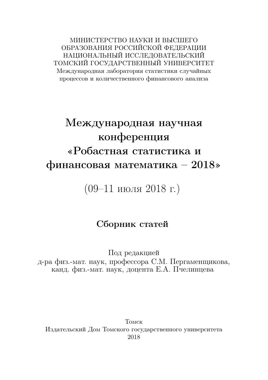 Международная научная конференция «Робастная статистика и финансовая математика – 2018» (09-11 июля 2018 г.)