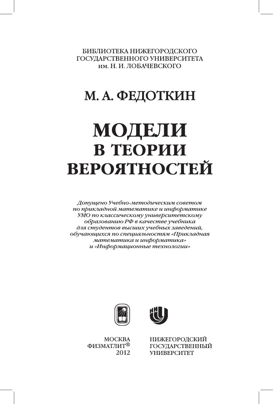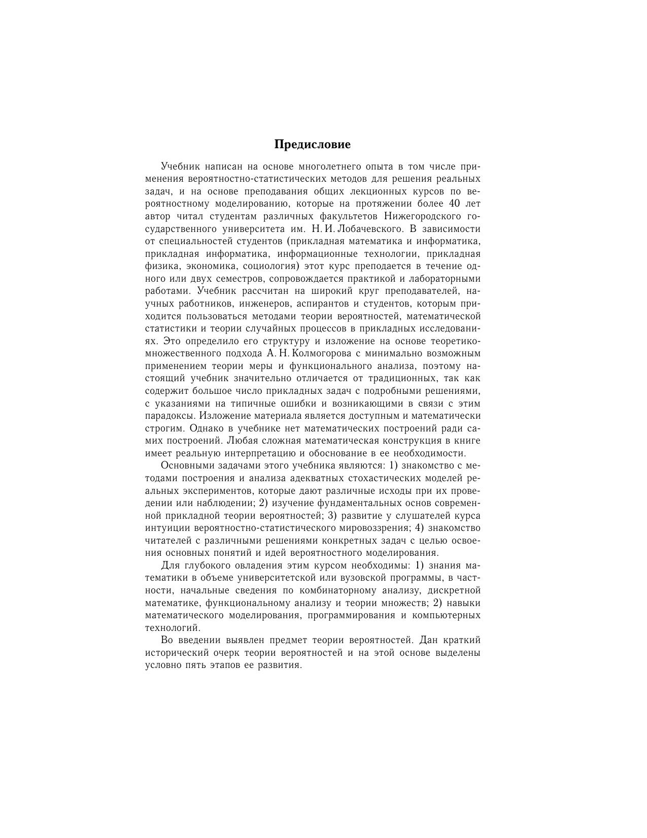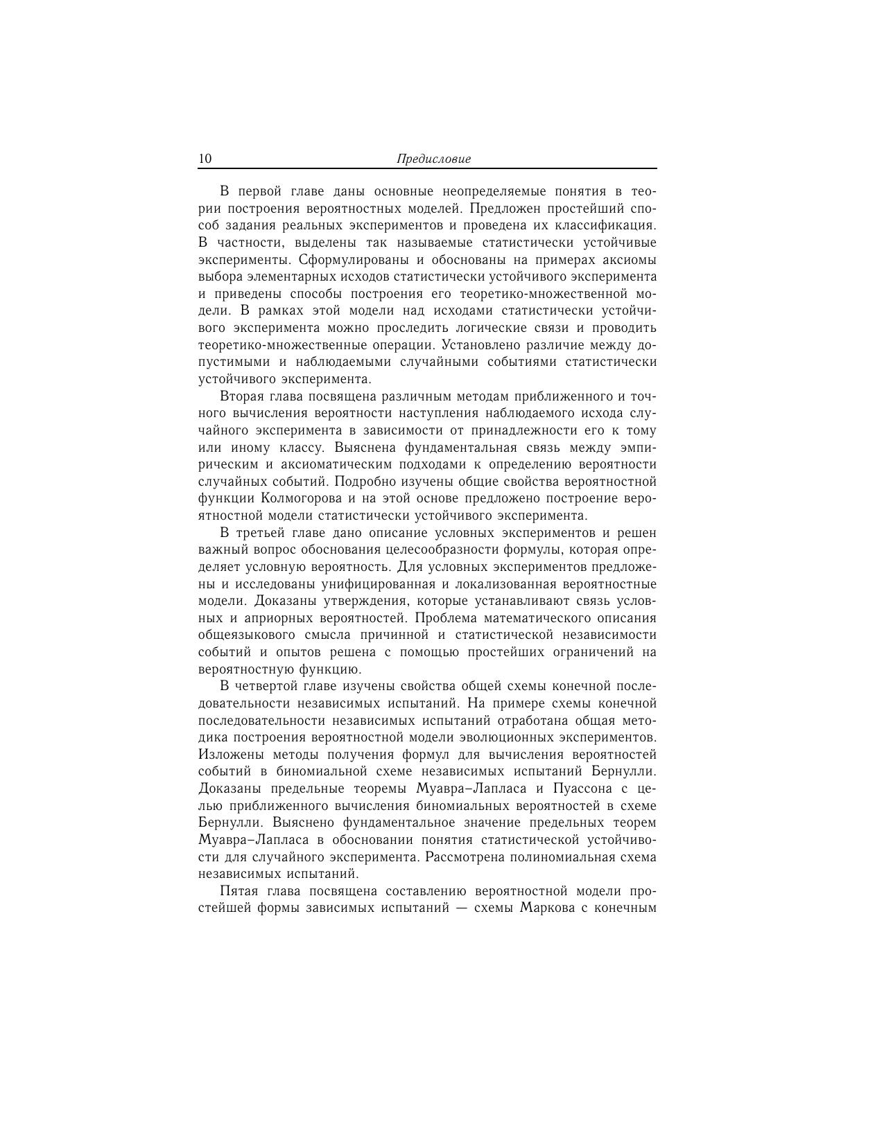 Изложены фундаментальные и прикладные основы современной теории вероятностного моделирования реальных процессов и явлений. Основное внимание уделено проблеме математического задания и классификации реальных экспериментов, интуитивным понятиям и формализации допустимых, элементарных и наблюдаемых исходов, построению теоретико-множественной и вероятностной моделей, функциональным и числовым характеристикам измерителей исходов статистически устойчивых экспериментов. Характерной особенностью книги является наличие большого числа конкретных задач с подробными решениями и замечаниями с целью развития вероятностной интуиции. Для широкого круга преподавателей, научных работников, инженеров, аспирантов, магистров и студентов, использующих вероятностно-статистические методы в прикладных и теоретических исследованиях реальных случайных экспериментов с применением компьютерных технологий.