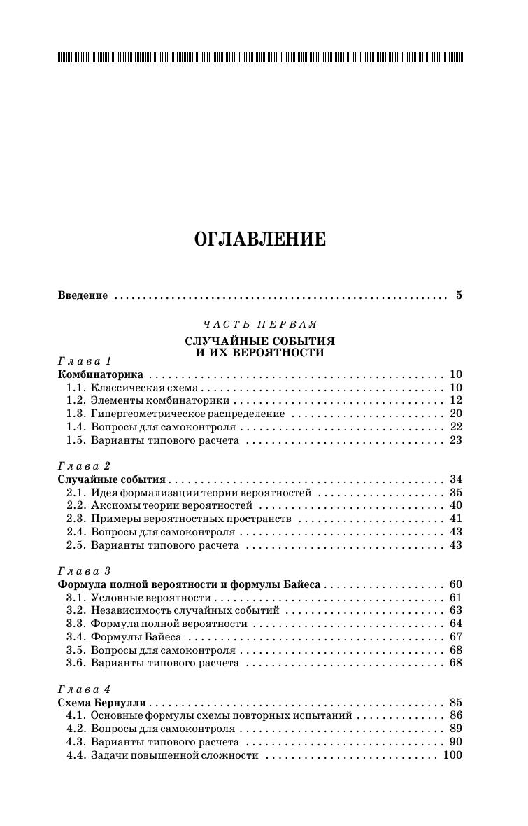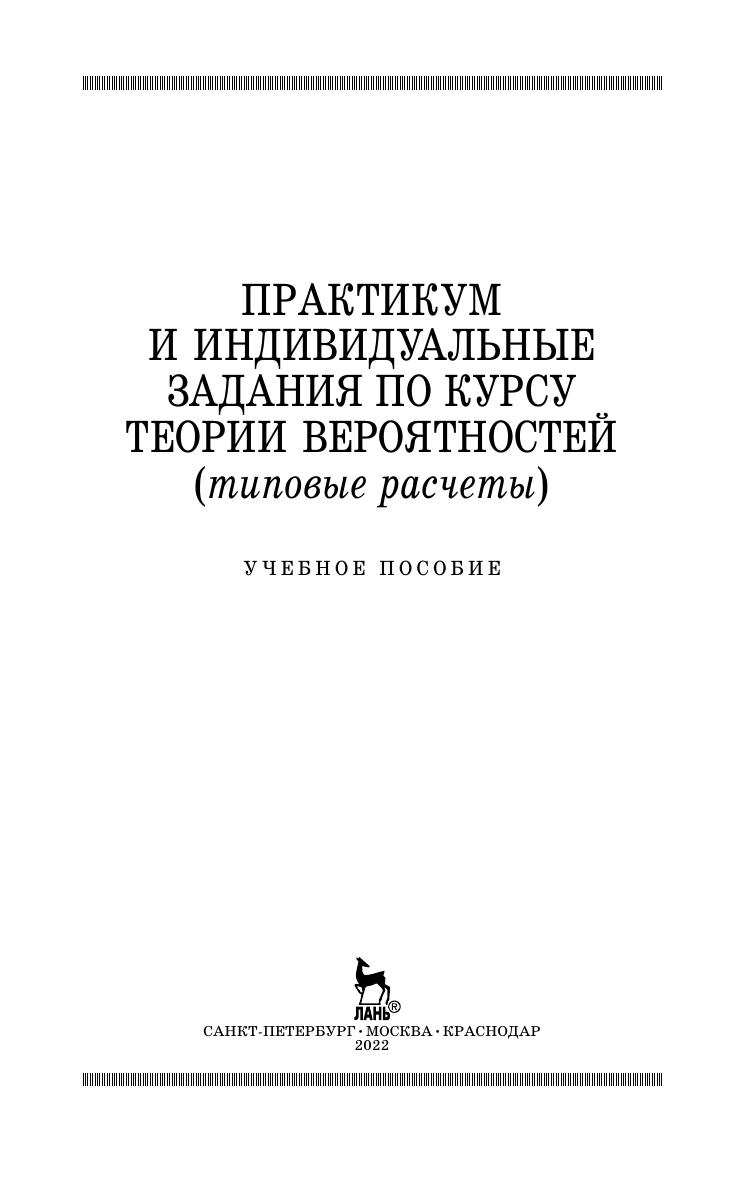 Настоящий практикум представляет собой сборник индивидуальных заданий (типовых расчетов) по комбинаторике и теории вероятностей. Излагаемые основные понятия и теоремы сопровождаются большим количеством примеров с решениями и вопросами для самоконтроля. Первая часть практикума содержит индивидуальные задания по следующим темам: комбинаторика, случайные события, формулы полной вероятности и Байеса, схема Бернулли. Вторая часть посвящена случайным величинам: дискретные случайные величины, непрерывные случайные величины и их числовые характеристики, важнейшие законы распределения непрерывных случайных величин и их свойства, важнейшие закономерности теории непрерывных случайных величин. Каждый типовой расчет содержит 30 вариантов. Большинство задач типовых расчетов первой части — сюжетные. Задачи второй части — прикладные. Для студентов и преподавателей технических, экономических, аграрных, юридических и других вузов. Практикум также может быть использован учителями для проведения дополнительных занятий со школьниками.