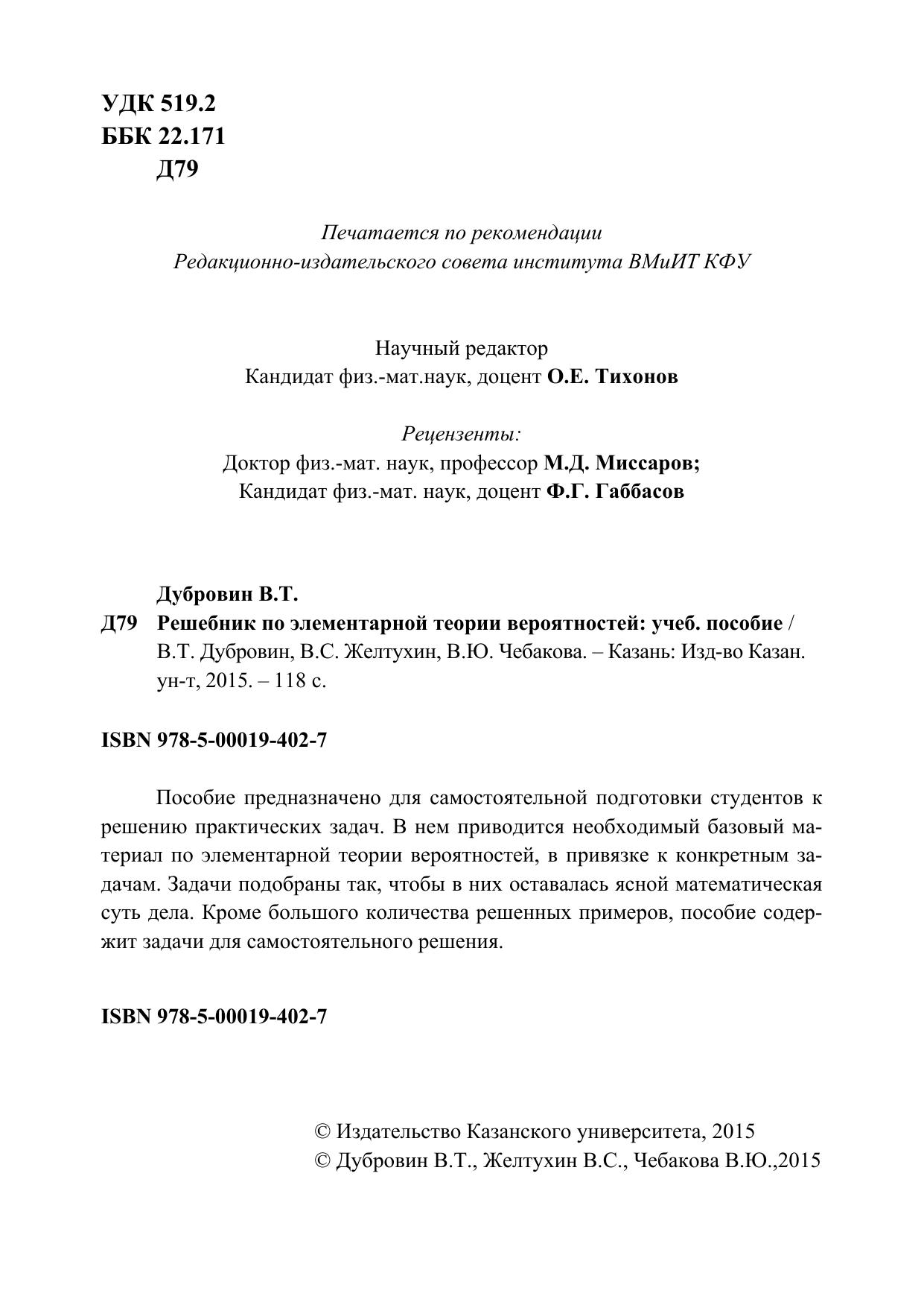 Решебник по элементарной теории вероятностей: учеб. пособие