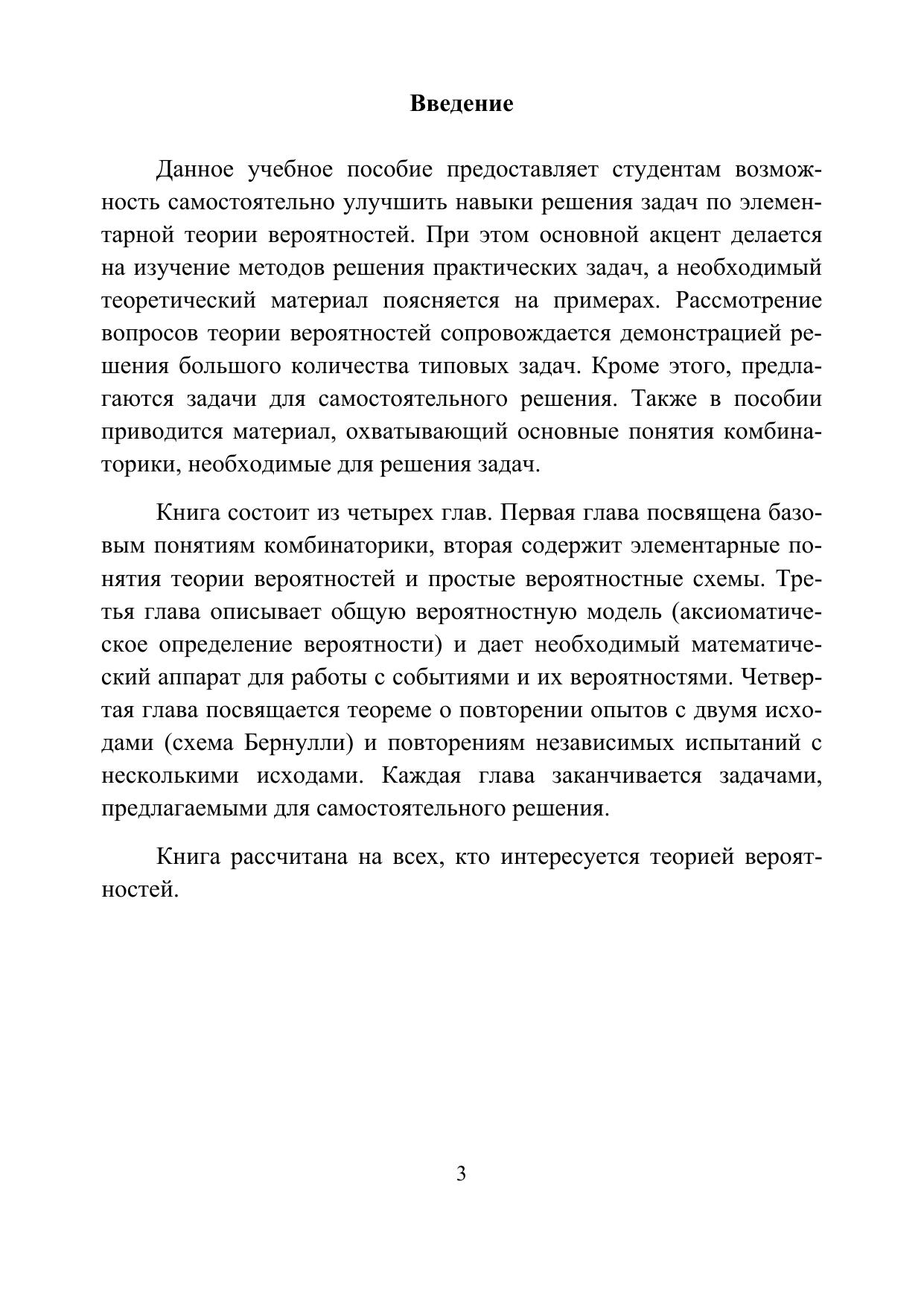 Пособие предназначено для самостоятельной подготовки студентов к решению практических задач. В нем приводится необходимый базовый материал по элементарной теории вероятностей, в привязке к конкретным задачам. Задачи подобраны так, чтобы в них оставалась ясной математическая суть дела. Кроме большого количества решенных примеров, пособие содержит задачи для самостоятельного решения.
