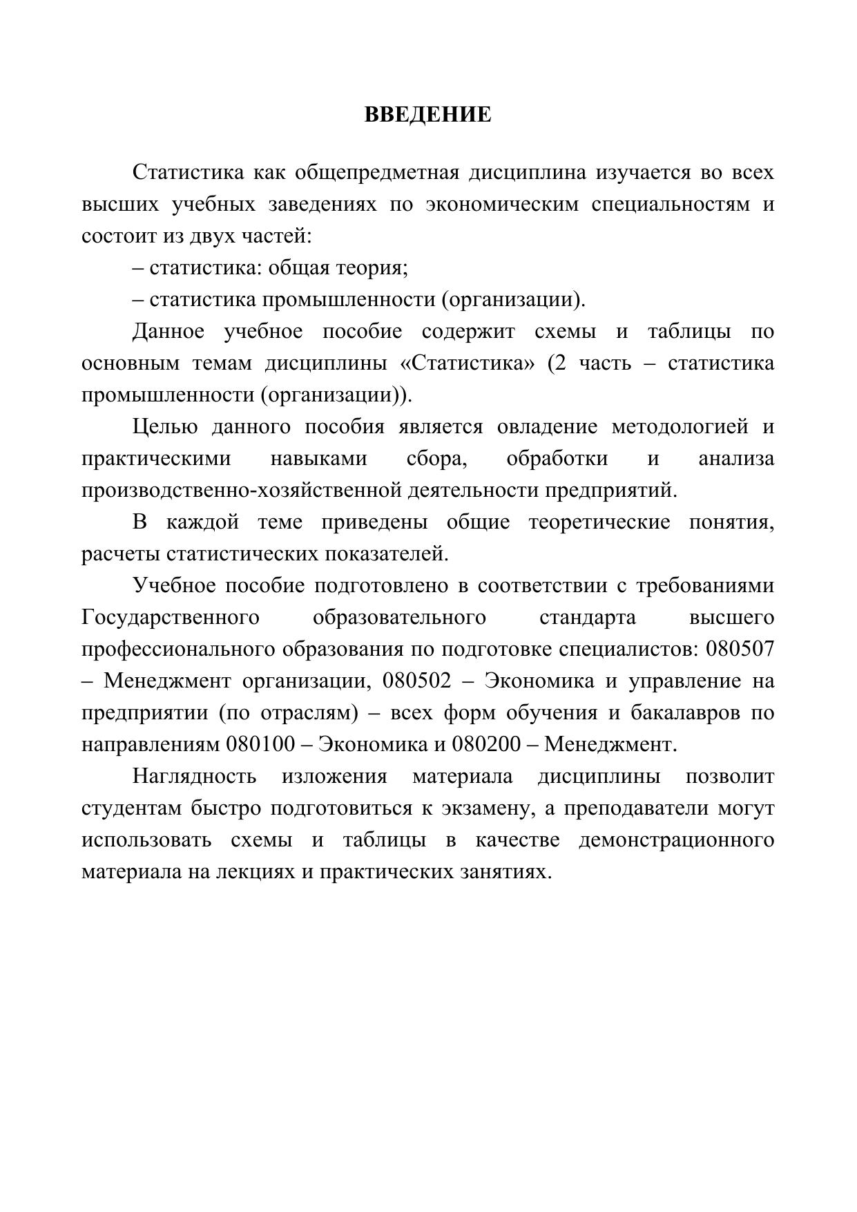 В учебном пособии в доступной и наглядной форме изложены общие теоретические положения дисциплины «Статистика» (2 часть) в соответствии с требованиями Государственного образовательного стандарта высшего профессионального образования. Данное пособие поможет студентам овладеть методологией и практическими навыками сбора, обработки и анализа производственно-хозяйственной деятельности предприятий, окажет несомненную помощь при подготовке к экзамену.