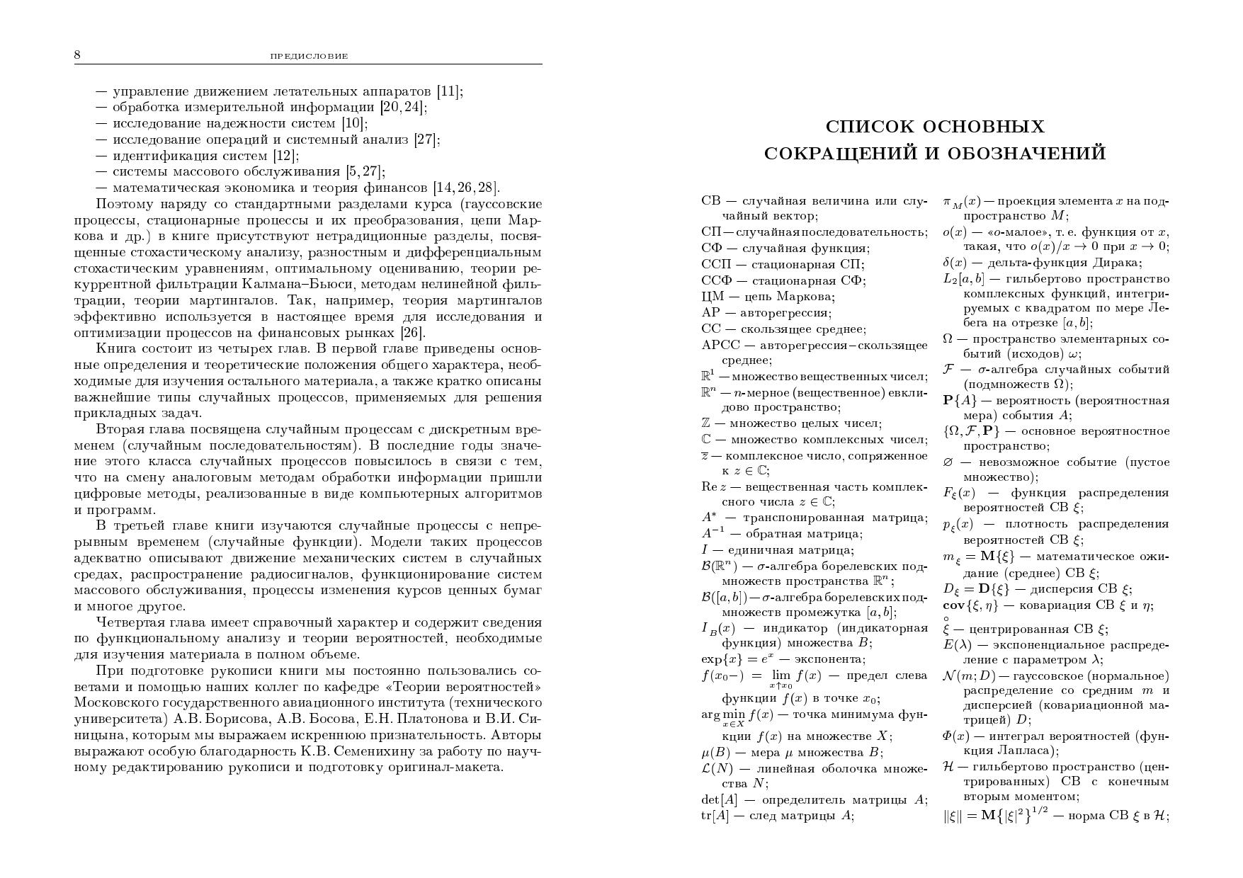 В книге изложены основы современной теории случайных процессов. Описаны важнейшие модели процессов с дискретным и непрерывным временем, методы их исследования и использования для решения прикладных задач. Рассмотрены решения многочисленных типовых примеров, приведены задачи для самостоятельного решения. Для студентов и аспирантов технических университетов, специализирующихся в области прикладной математики, теории управления, обработки информации и экономики.