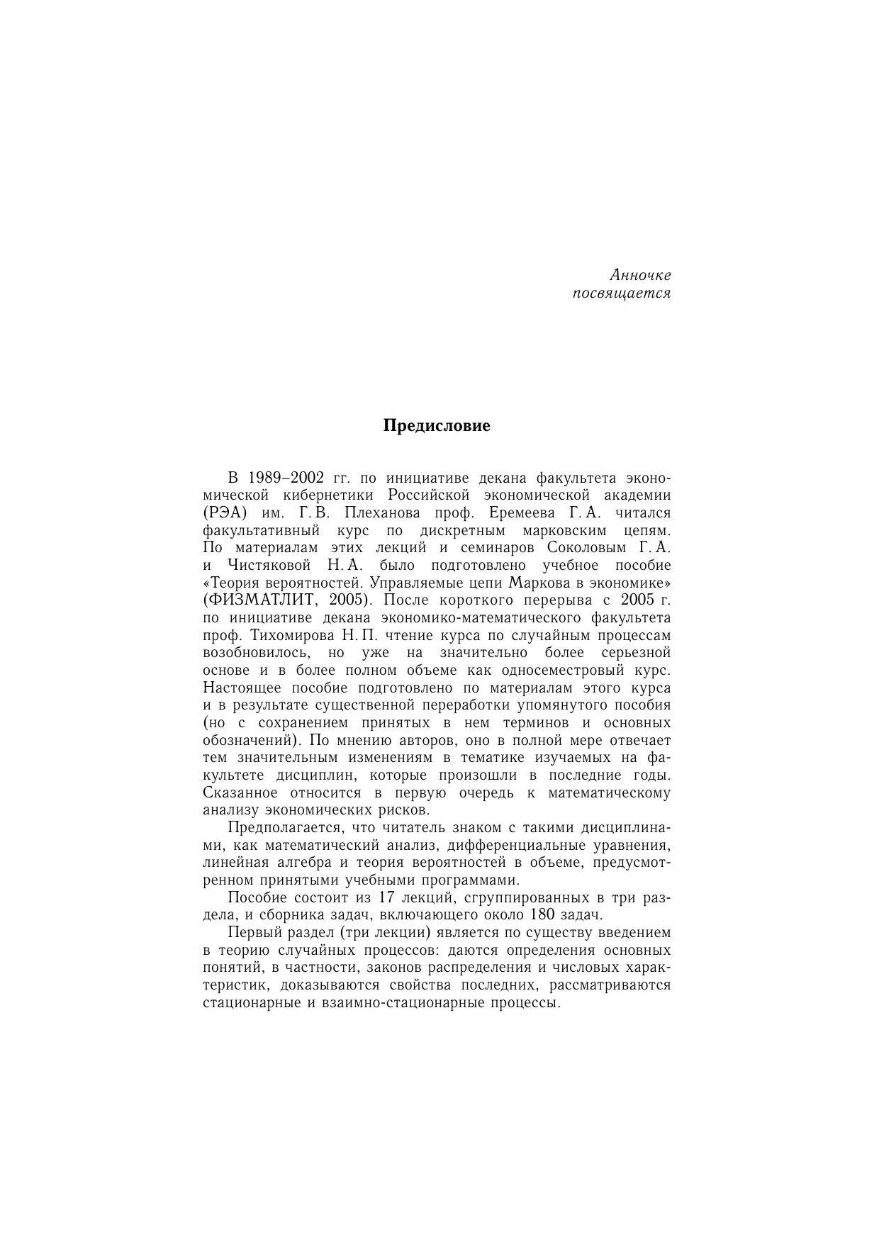 Пособие содержит изложение семестрового курса по теории случайных процессов для экономистов. Оно состоит из двух взаимосогласованных частей: теоретической (в виде 17 лекций) и практической (в виде сборника, включающего свыше 180 примеров и задач). Основное внимание уделяется не столько теоретическим, сколько практическим аспектам марковских случайных процессов - как дискретных, так и непрерывных. Для студентов, аспирантов, практиков и научных работников экономико-математических и общеэкономических специальностей. Рекомендовано УМО по образованию в области экономики и экономической теории в качестве учебного пособия для студентов высших учебных заведений, обучающихся по направлению «Экономика» и экономическим специальностям.
