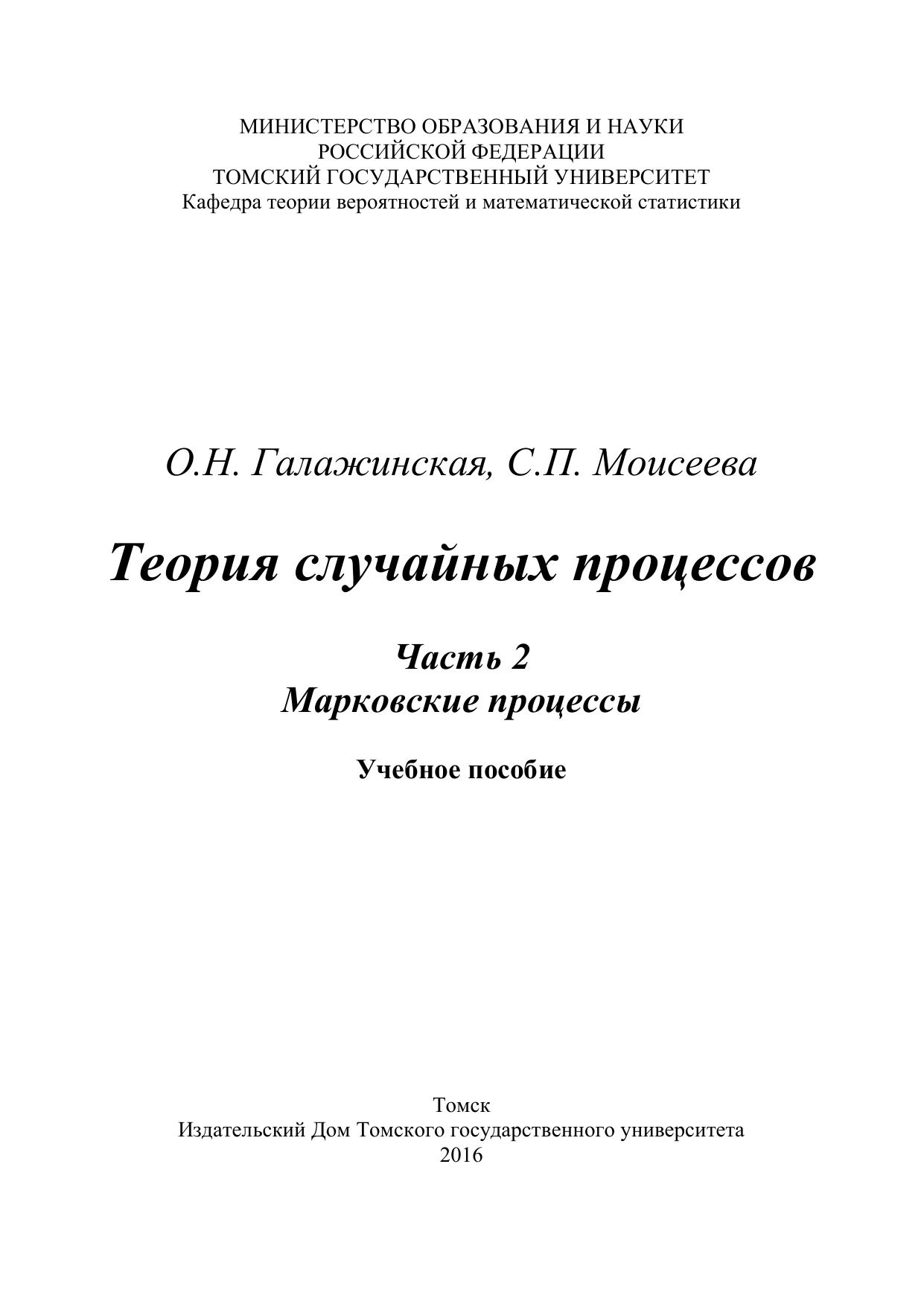 Теория случайных процессов. Часть 2. Марковские процессы