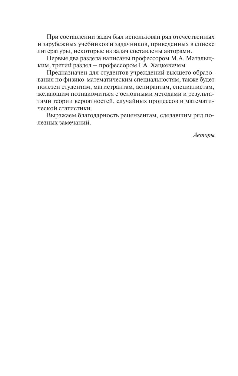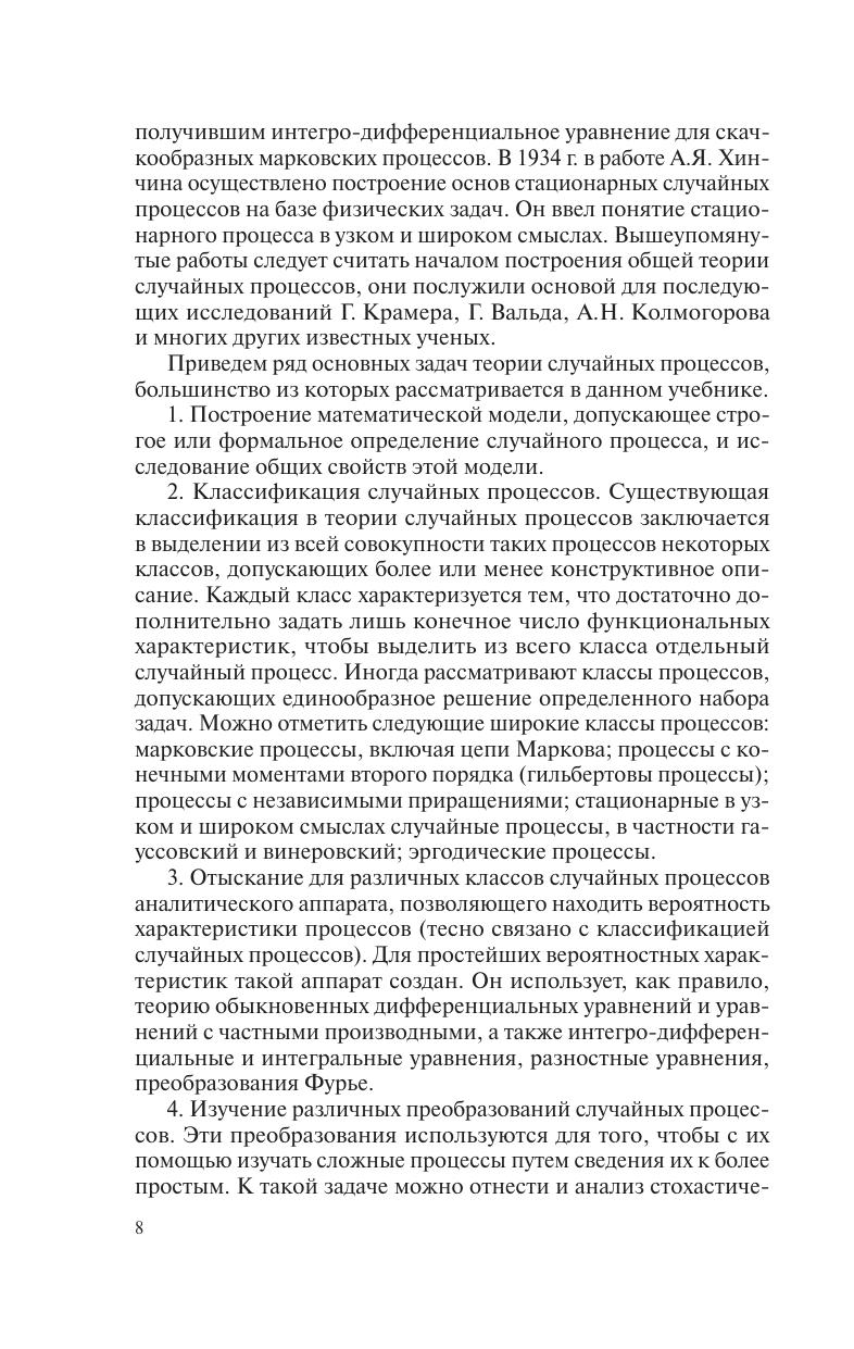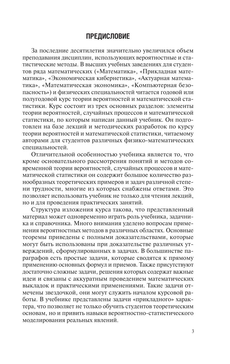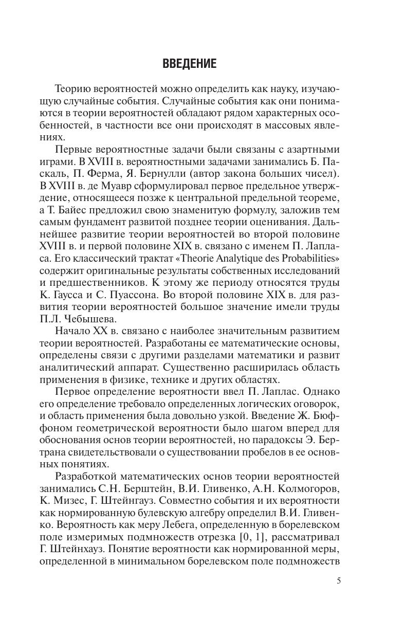 Приведены определения вероятности случайных событий и соотношения, связанные с условными вероятностями и схемой Бернулли; типы случайных величин, их числовые и функциональные характеристики; закон больших чисел и центральная предельная теорема; сведения о марковских случайных процессах и цепях Маркова с дискретным и непрерывным временем, стохастических интегралах и дифференциальных уравнениях. Рассмотрены вопросы применения случайных процессов; основные распределения, применяемые в статистике; проверка простых и сложных гипотез; последовательный и дисперсионный анализ; линейные регрессионные модели. Даны решения более 130 различных типов примеров и более 800 задач для самостоятельного решения. Для студентов учреждений высшего образования по физико-математическим специальностям. Будет полезен магистрантам и аспирантам, преподавателям, а также научным и практическим работникам.