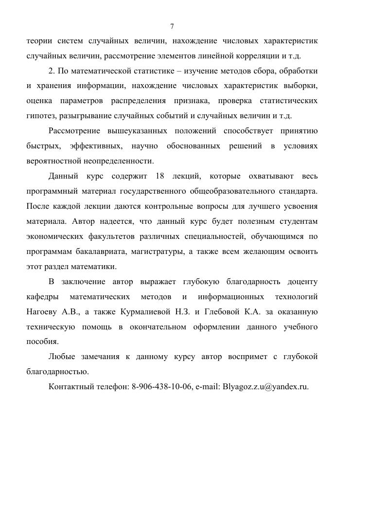 Курс лекций охватывает весь программный материал государственного образовательного стандарта по данной дисциплине, состоит из 18 лекций и приложения. Соответствует современным требованиям Федерального государственного образовательного стандарта среднего профессионального образования и профессиональным квалификационным требованиям. Курс лекций предназначен для учащихся колледжей, а также для самостоятельного изучения теории вероятностей математической статистики.