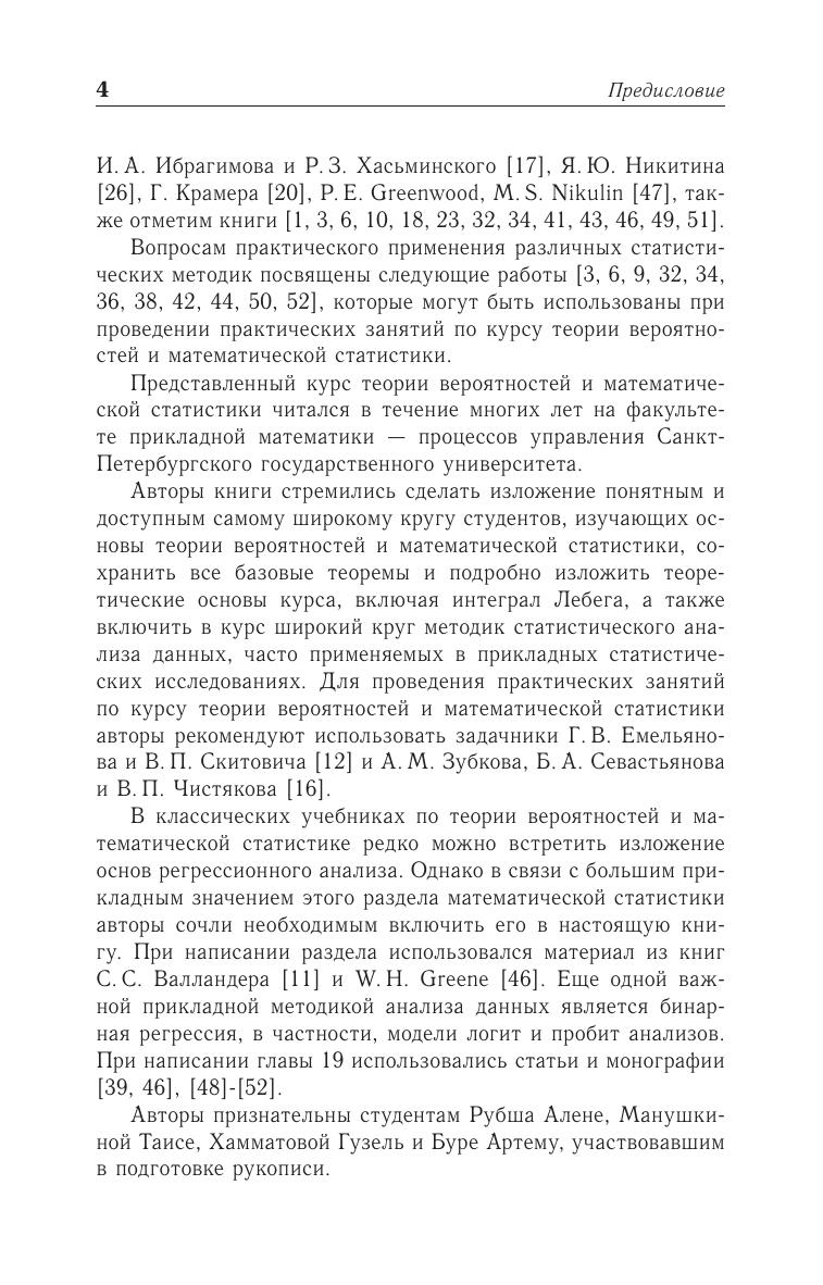 В книге изложены основные разделы современного курса теории вероятностей и математической статистики, включая условные распределения, основные предельные теоремы, метод характеристических функций, принципы статистического оценивания, методы построения доверительных интервалов, методы проверки статистических гипотез, регрессионный анализ и бинарная регрессия. Книга предназначена для студентов, изучающих методы теории вероятностей, математической статистики.