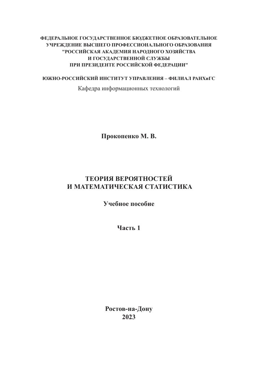 Теория вероятностей и математическая статистика (I часть)