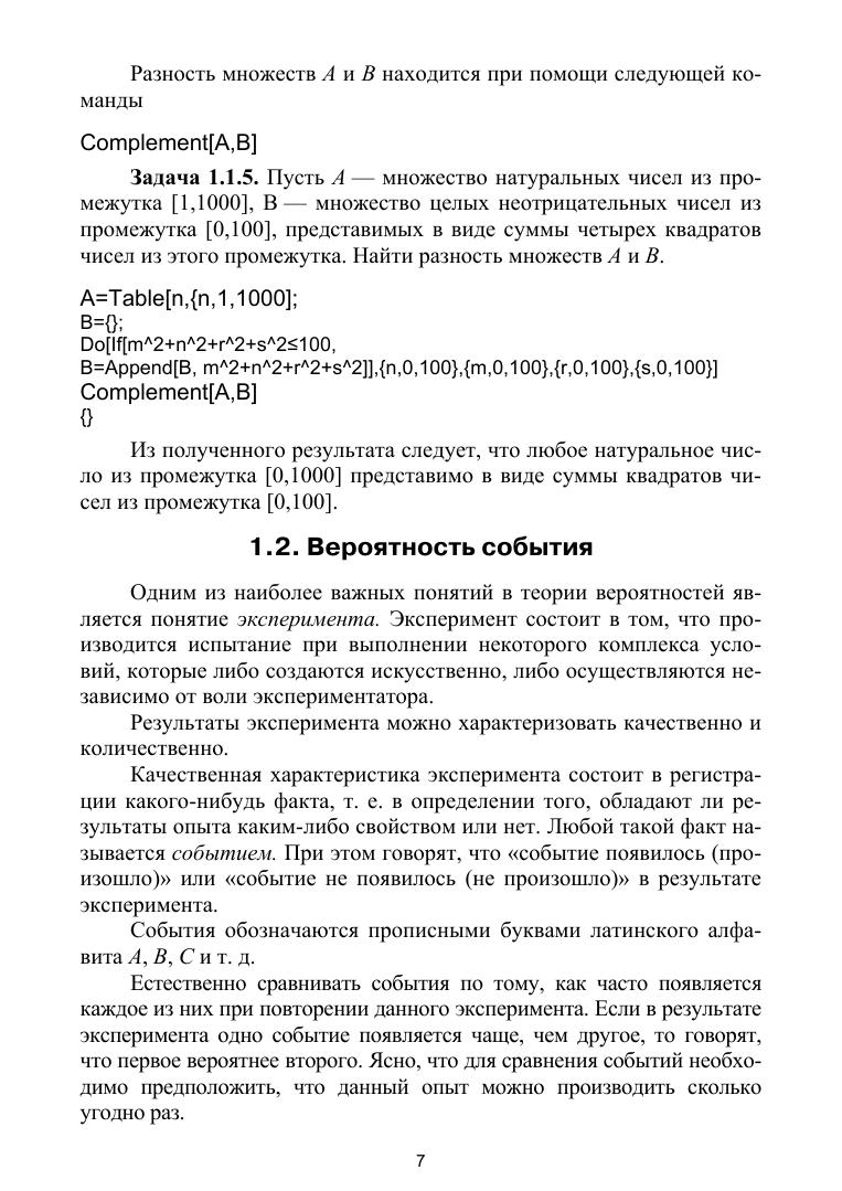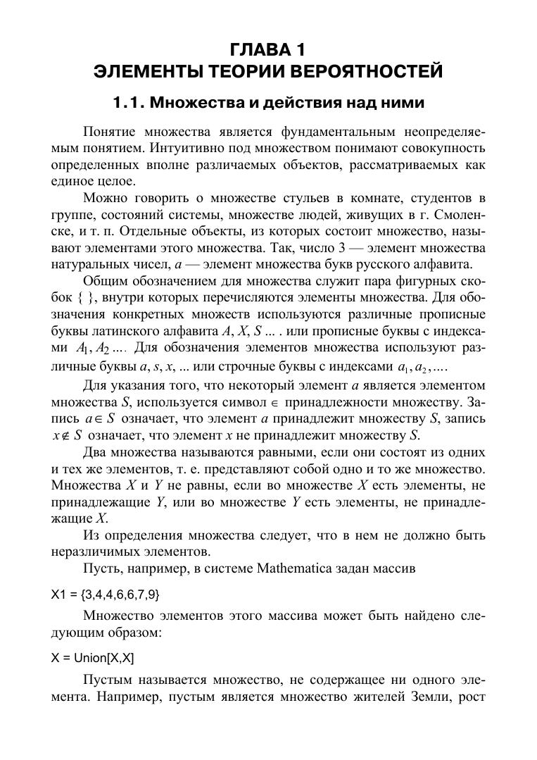 В пособии излагаются основы теории вероятностей и математической статистики. Рассмотрено большое количество задач и примеров. Изложение ведется с использованием системы Wolfram Mathematica. Все примеры сопровождаются описанием решения с использованием данной системы. Пособие предназначено для студентов, обучающихся по направлениям подготовки: «Прикладная математика и информатика», «Строительство», и других математических, технических и экономических направлений подготовки и специальностей, а также исследователей, использующих в своей работе методы теории вероятностей и математической статистики.