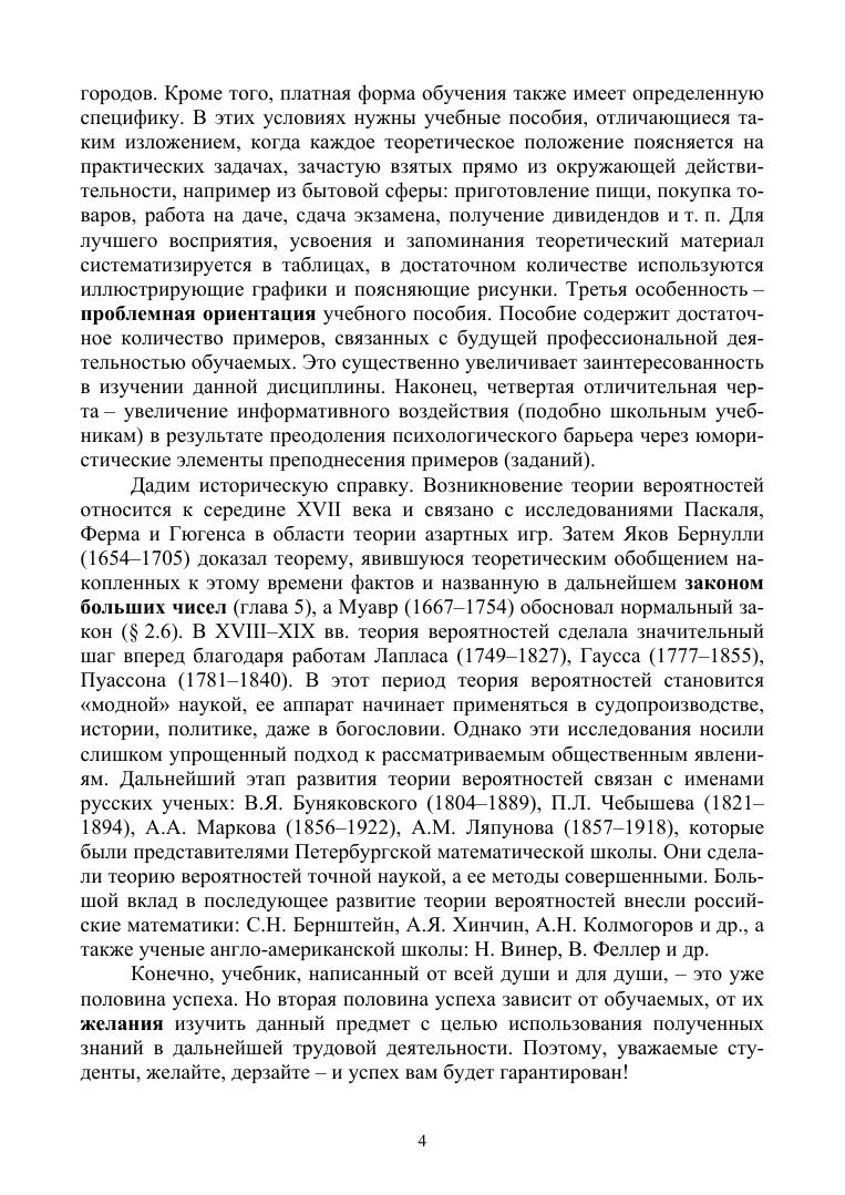 В пособии кратко и доходчиво изложены основные разделы теории вероятностей: алгебра событий, случайные величины и системы случайных величин, функции случайных величин, случайные процессы, а также предельные теоремы теории вероятностей. Рассмотрено достаточное количество примеров. Приводятся примеры использования вероятностных методов в задачах социально-производственной сферы при обосновании решений, направленных на приобретение навыков вероятностного моделирования для будущей профессиональной деятельности. Пособие снабжено расчетными таблицами и предметным указателем. Пособие предназначено для студентов вузов, обучающихся по направлению «Экономика».