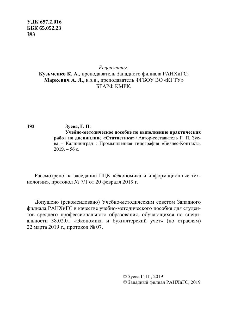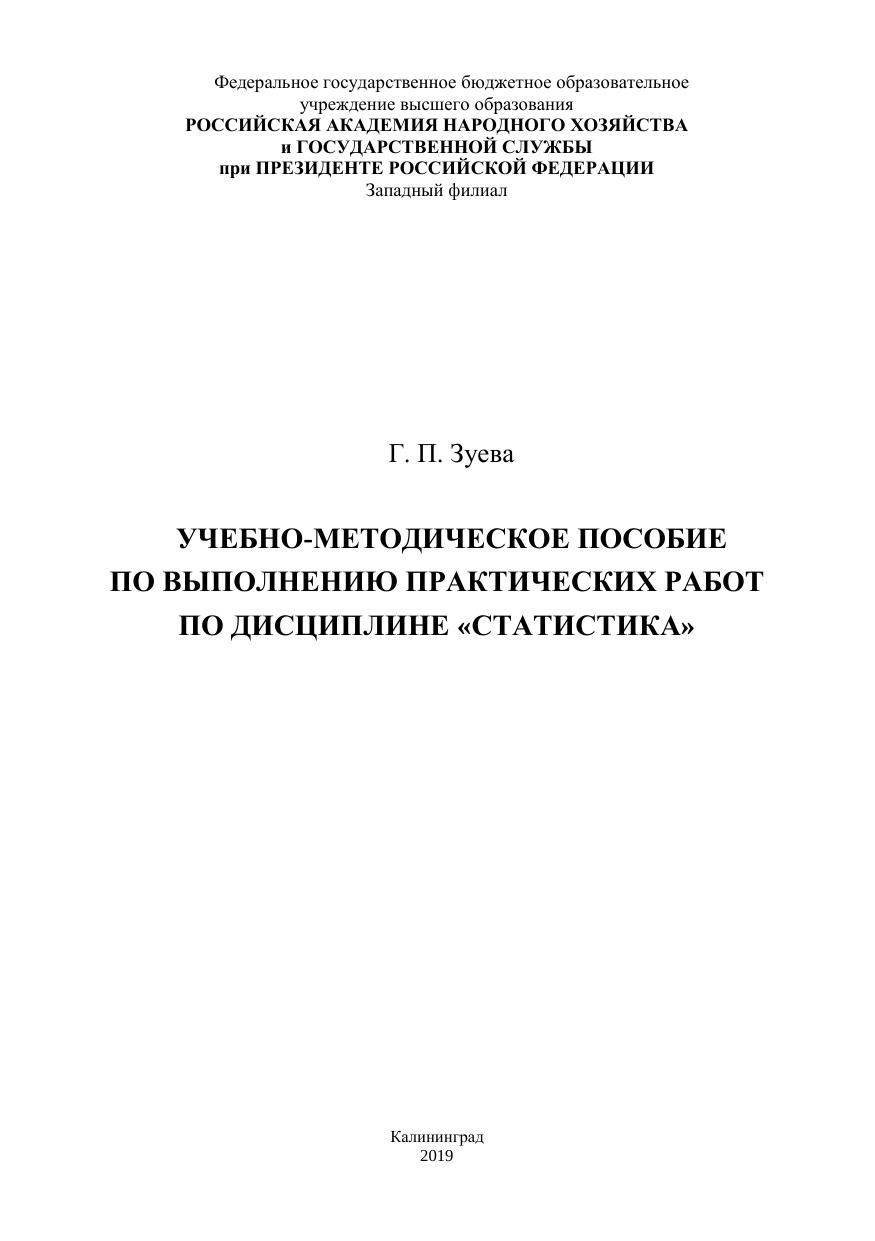 Учебно-методическое пособие по выполнению практических работ по дисциплине «Статистика»