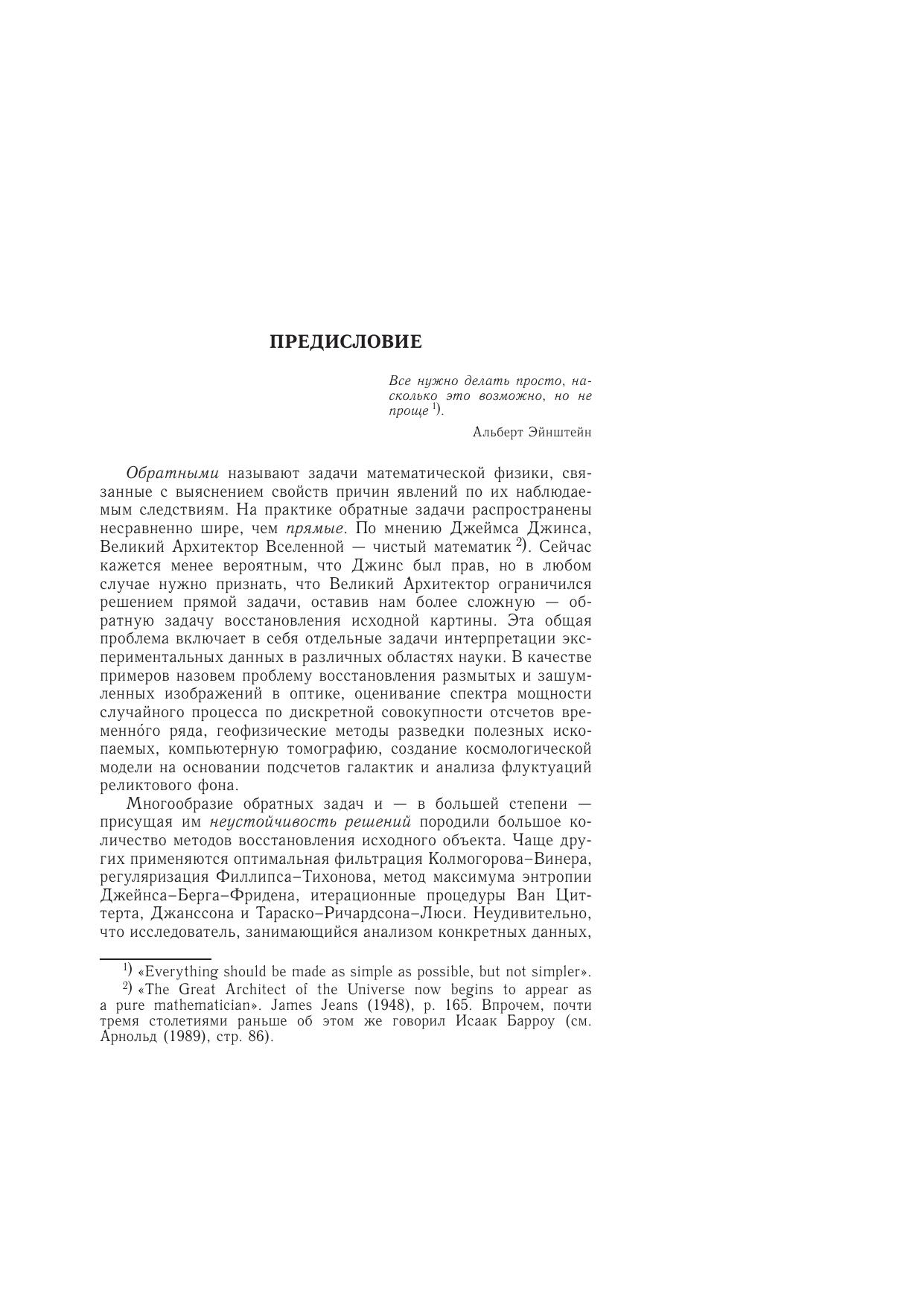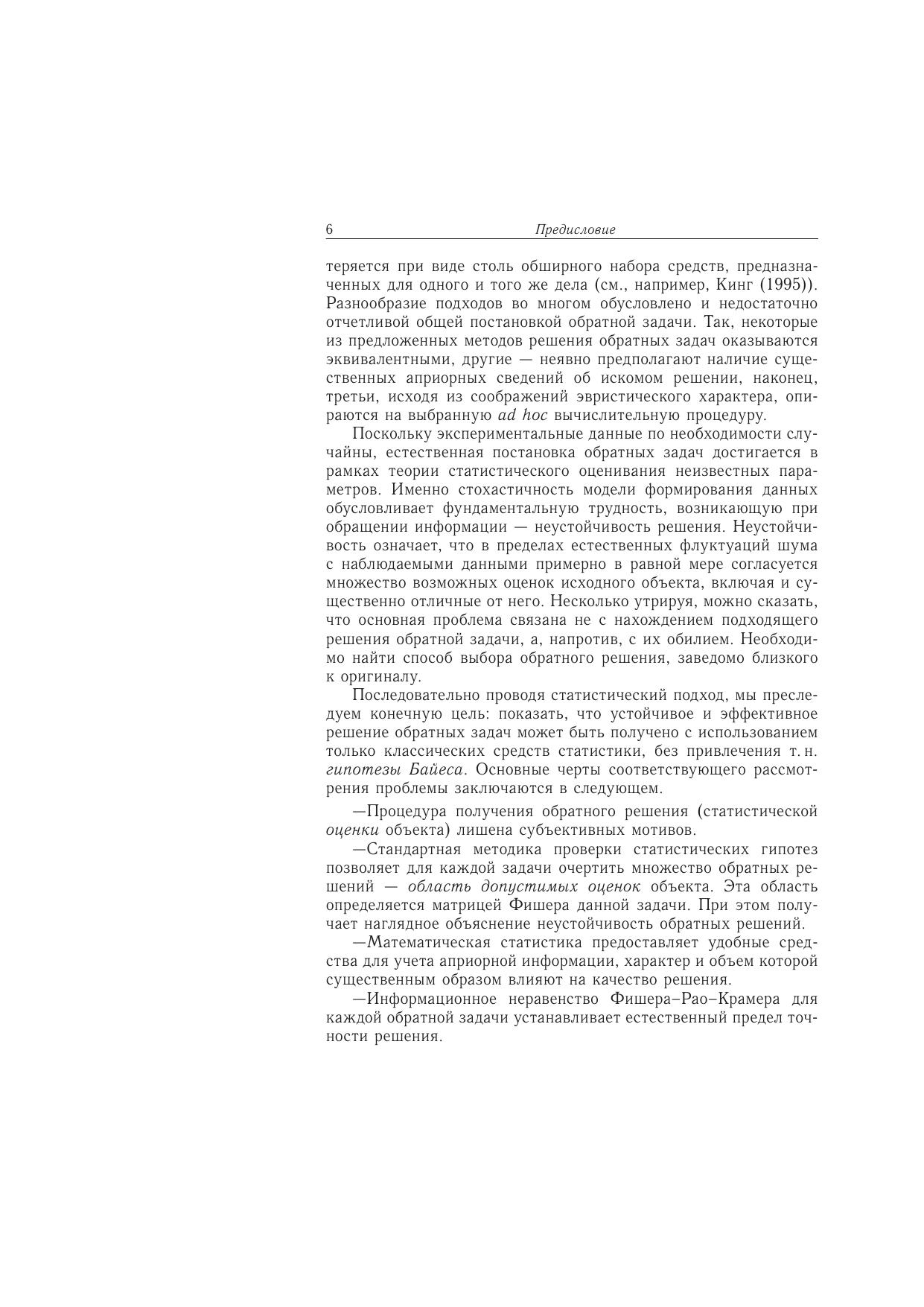 В книге изложена теория обратных задач, часто встречающихся в физике и технике. Основываясь на понятиях математической статистики, анализируется ряд известных методов обращения информации, в частности: оптимальная фильтрация Колмогорова-Винера, метод максимума энтропии, регуляризация Филлипса-Тихонова и восстановление изображений с помощью итерационных процедур. Показано, что последовательное применение методов статистики с учетом априорной информации, реально доступной исследователю, позволяет получить устойчивые и эффективные решения обратных задач. Теоретическое рассмотрение сопровождается большим числом примеров приведены сводки расчетных формул. В качестве приложений изучаются проблема предельной разрешающей силы оптических приборов, классическая задача непараметрического оценивания спектра мощности временного ряда и актуальная в последние годы фазовая проблема. Книга рассчитана на специалистов различных областей науки и техники. Она доступна студентам университетов и технических учебных заведений.