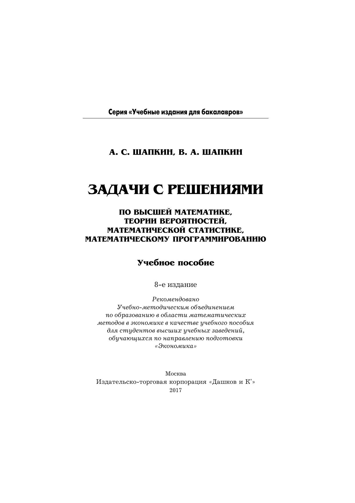 Задачи с решениями по высшей математике, теории вероятностей, математической статистике, математическому программированию