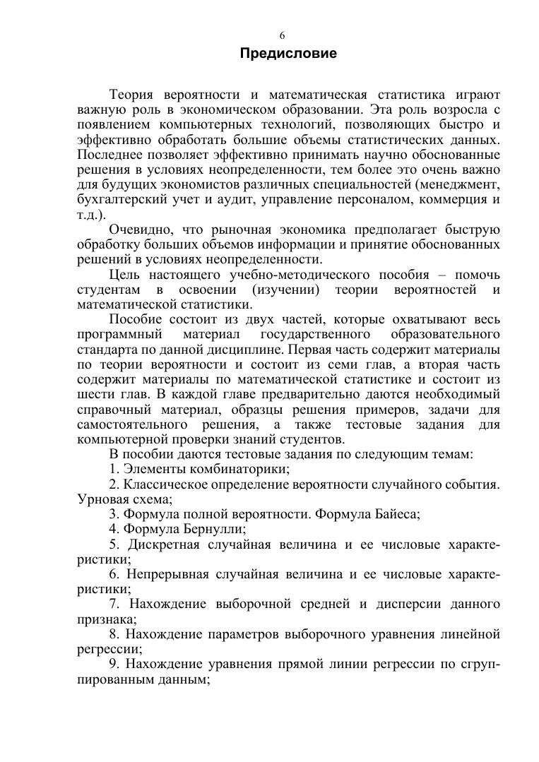 Учебное пособие содержит необходимый справочный материал, образцы решения примеров, задачи для самостоятельного решения, а также тестовые задания для компьютерной проверки знаний студентов. Соответствует современным требованиям Федерального государственного образовательного стандарта среднего профессионального образования и профессиональным квалификационным требованиям. Учебное пособие предназначено для учащихся колледжей, а также для самостоятельного изучения теории вероятности и математической статистики.