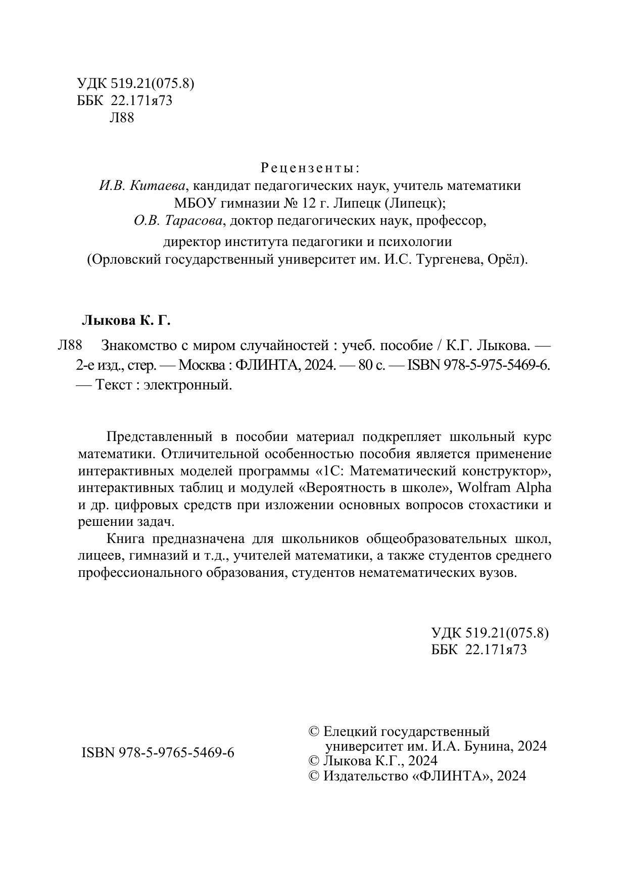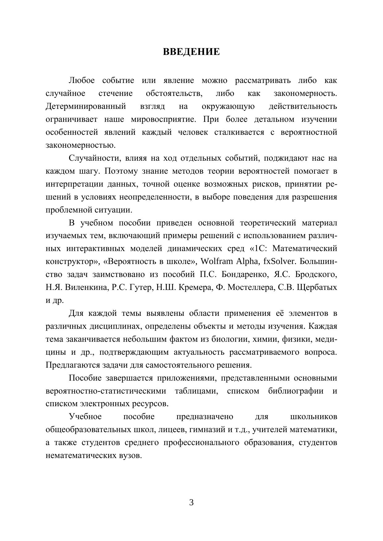 Представленный в пособии материал подкрепляет школьный курс математики. Отличительной особенностью пособия является применение интерактивных моделей программы «1С: Математический конструктор», интерактивных таблиц и модулей «Вероятность в школе», Wolfram Alpha и др. цифровых средств при изложении основных вопросов стохастики и решении задач. Книга предназначена для школьников общеобразовательных школ, лицеев, гимназий и т.д., учителей математики, а также студентов среднего профессионального образования, студентов нематематических вузов.