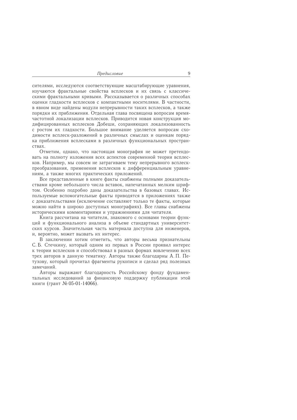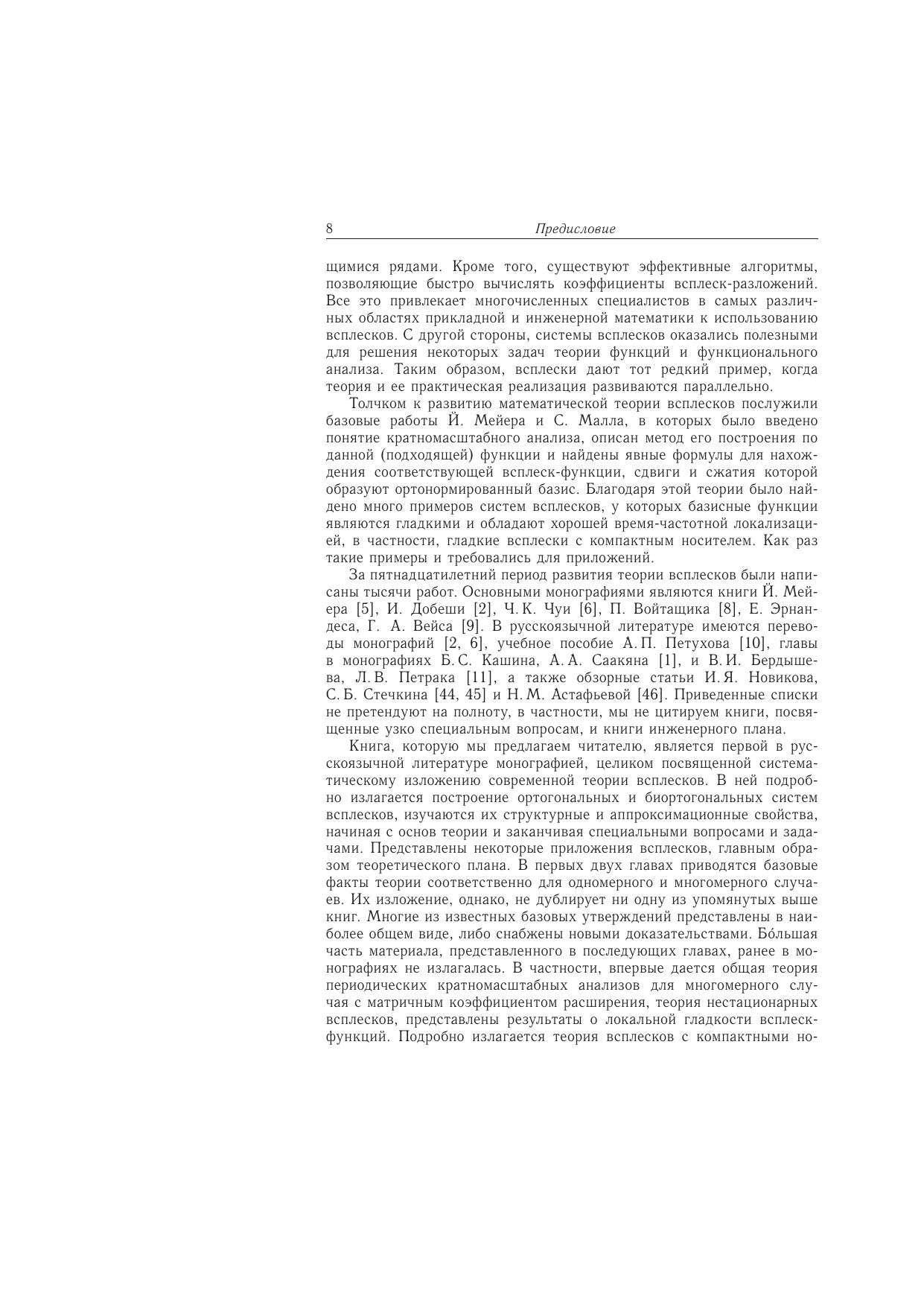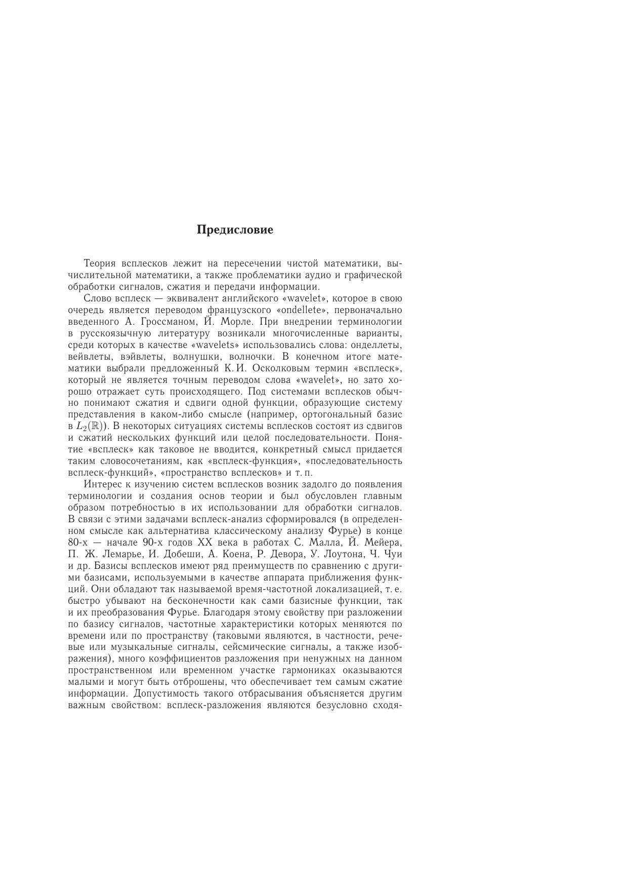 Теория всплесков (вейвлетов) лежит на пересечении чистой математики, вычислительной математики и аудио и графической обработки сигналов, сжатия и передачи информации. Всплеск-анализ сформировался в 80–90 гг. XX века. Данная книга является первой в русскоязычной литературе монографией, целиком посвященной систематическому изложению современной теории всплесков. В ней подробно излагается построение ортогональных и биортогональных систем всплесков, изучаются их структурные и аппроксимационные свойства, начиная с основ теории и заканчивая специальными вопросами и задачами. Значительная часть представленного материала ранее в монографиях не излагалась. Для студентов старших курсов, аспирантов, научных работников и инженеров.