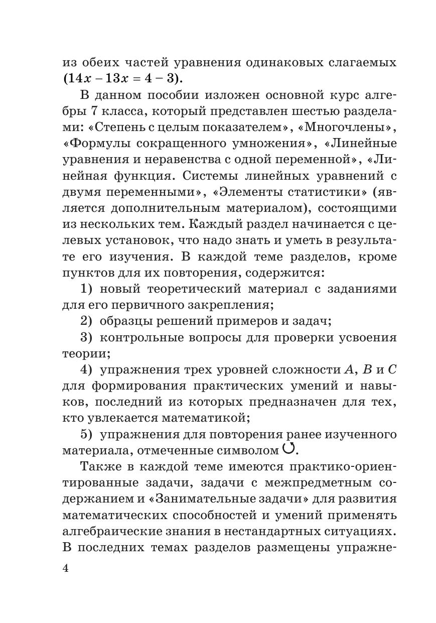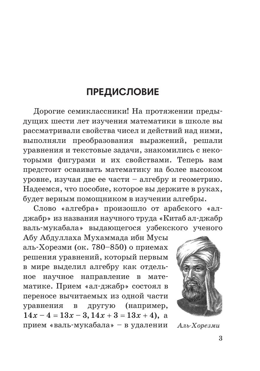 Пособие написано в соответствии с программой по математике для учреждений общего среднего образования. В нем изложен курс алгебры 7 класса в доступной, познавательной и интересной форме. Теория сопровождается примерами и задачами с решениями. К каждой теме предлагаются упражнения трех уровней сложности и занимательные задачи, в том числе олимпиадного характера, которые в дальнейшем помогут подготовиться к экзаменам и тестам, а также развить математические способности учащихся. Для учащихся учреждений общего среднего образования (школы, гимназии), абитуриентов. Будет полезно для самостоятельной работы учащихся.