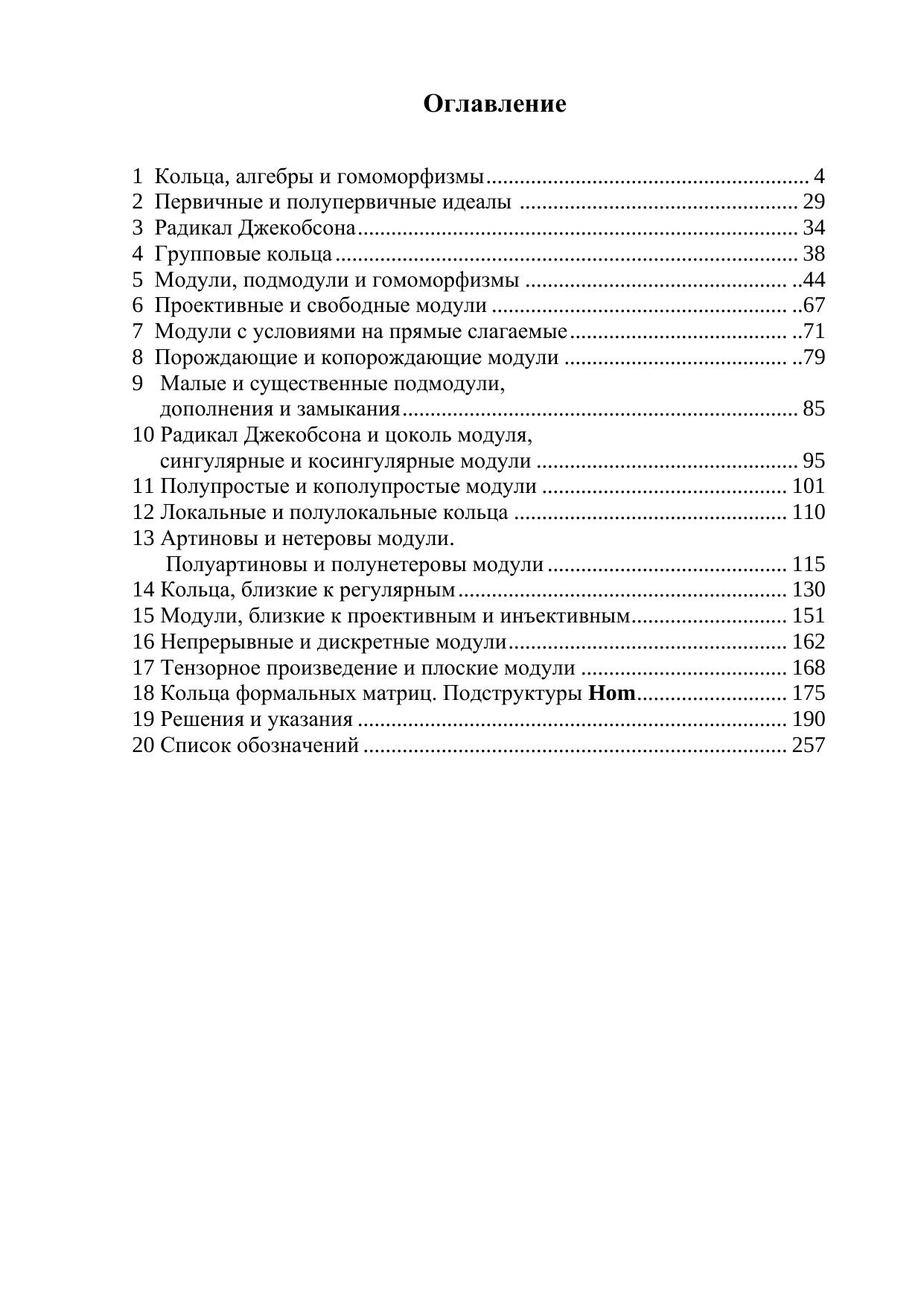 Данная монография посвящена изложению теории ассоциативных колец с единицей и модулей над ними в случае не обязательно коммутативных колец. Материал представлен в виде теорем, определений, примеров и задач. Книга может быть полезна всем алгебраистам, интересующимся кольцами и модулями. Она может служить учебным пособием для студентов и аспирантов, изучающих современную алгебру. Исследование выполнено за счет гранта Российского научного фонда.