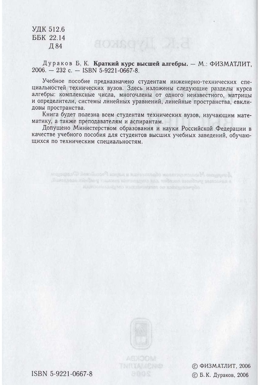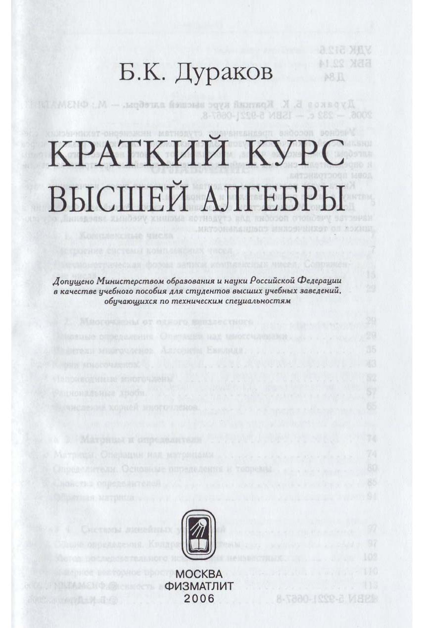 Краткий курс высшей алгебры