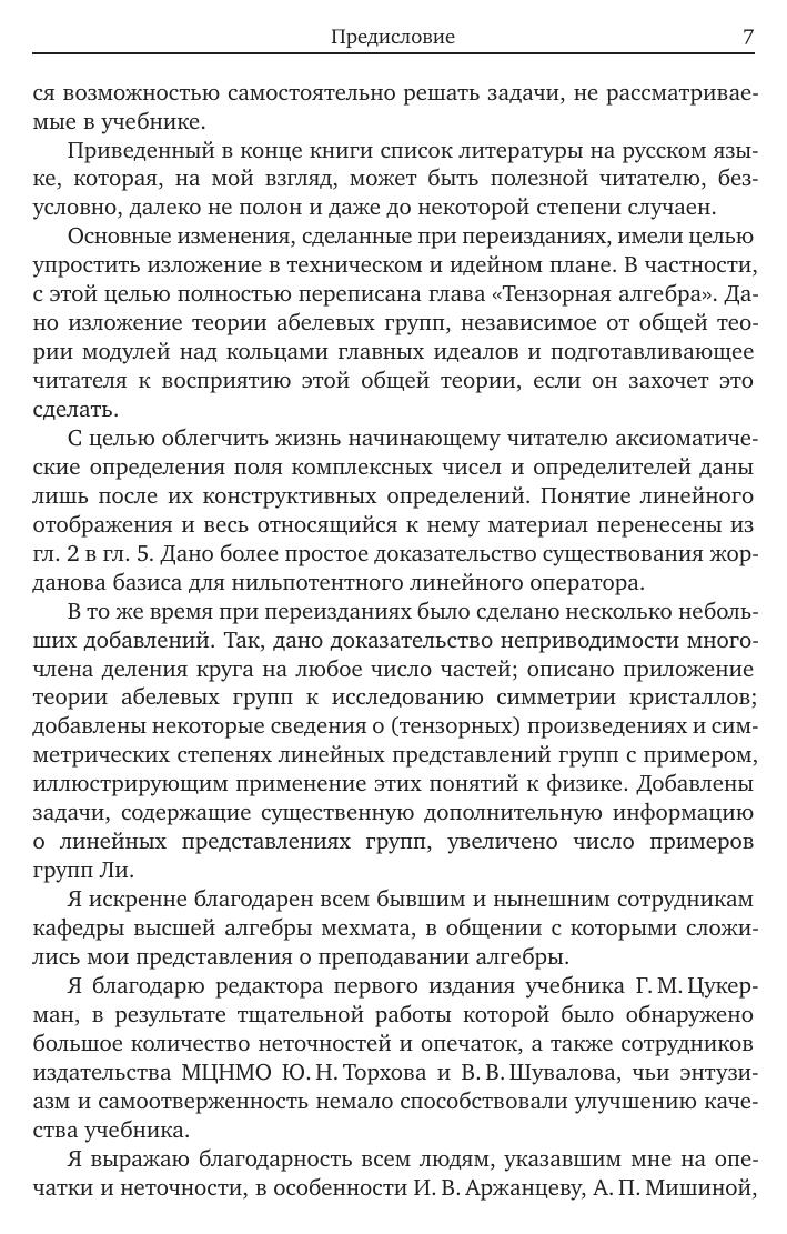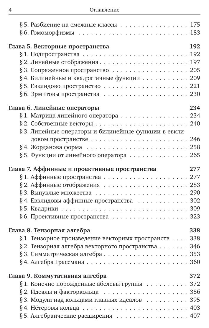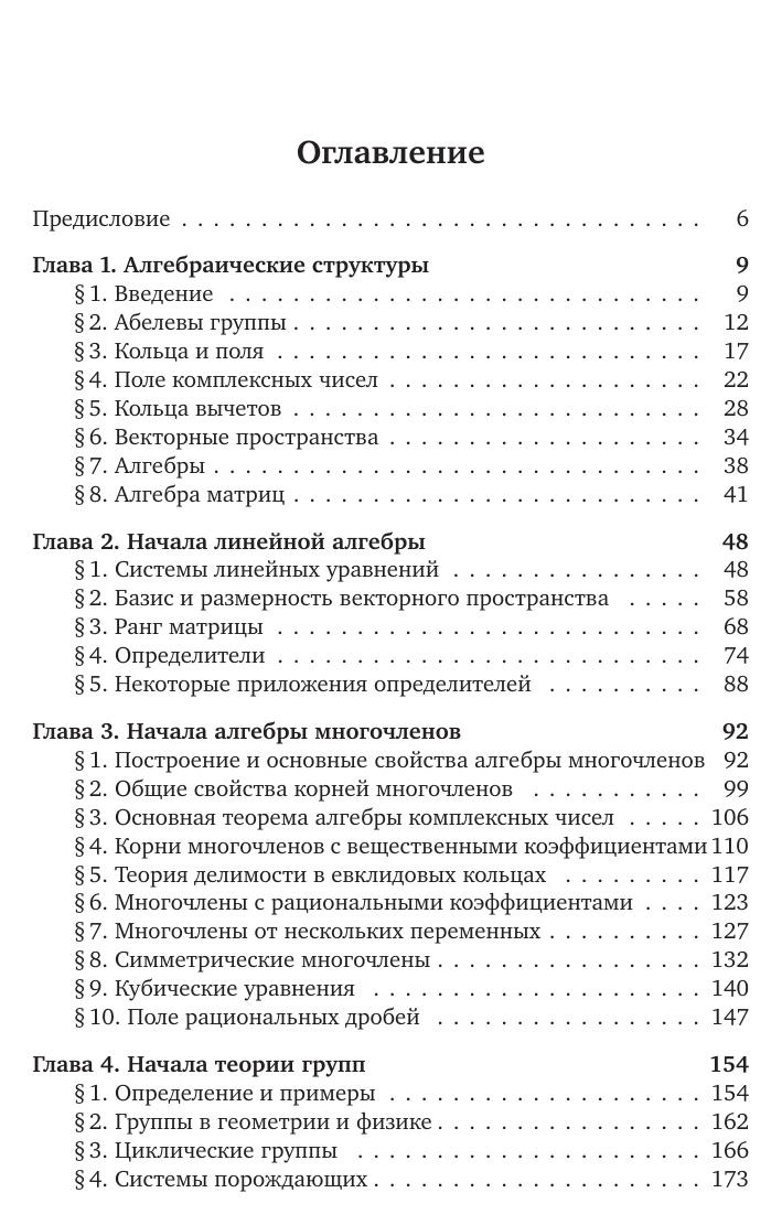 Книга представляет собой расширенный вариант курса алгебры, читаемого в течение трех семестров на математических факультетах. В нее включены такие дополнительные разделы, как элементы коммутативной алгебры (в связи с аффинной алгебраической геометрией), теории Галуа, теории конечномерных ассоциативных алгебр и теории групп Ли. Это позволяет использовать книгу не только как учебник по общему курсу алгебры, но и как пособие для тех, кто желает углубить свои познания в алгебре. Изложение иллюстрируется большим количеством примеров и сопровождается задачами, часто содержащими дополнительный материал. Книга предназначена для математиков и физиков –– студентов, аспирантов, преподавателей и научных работников.