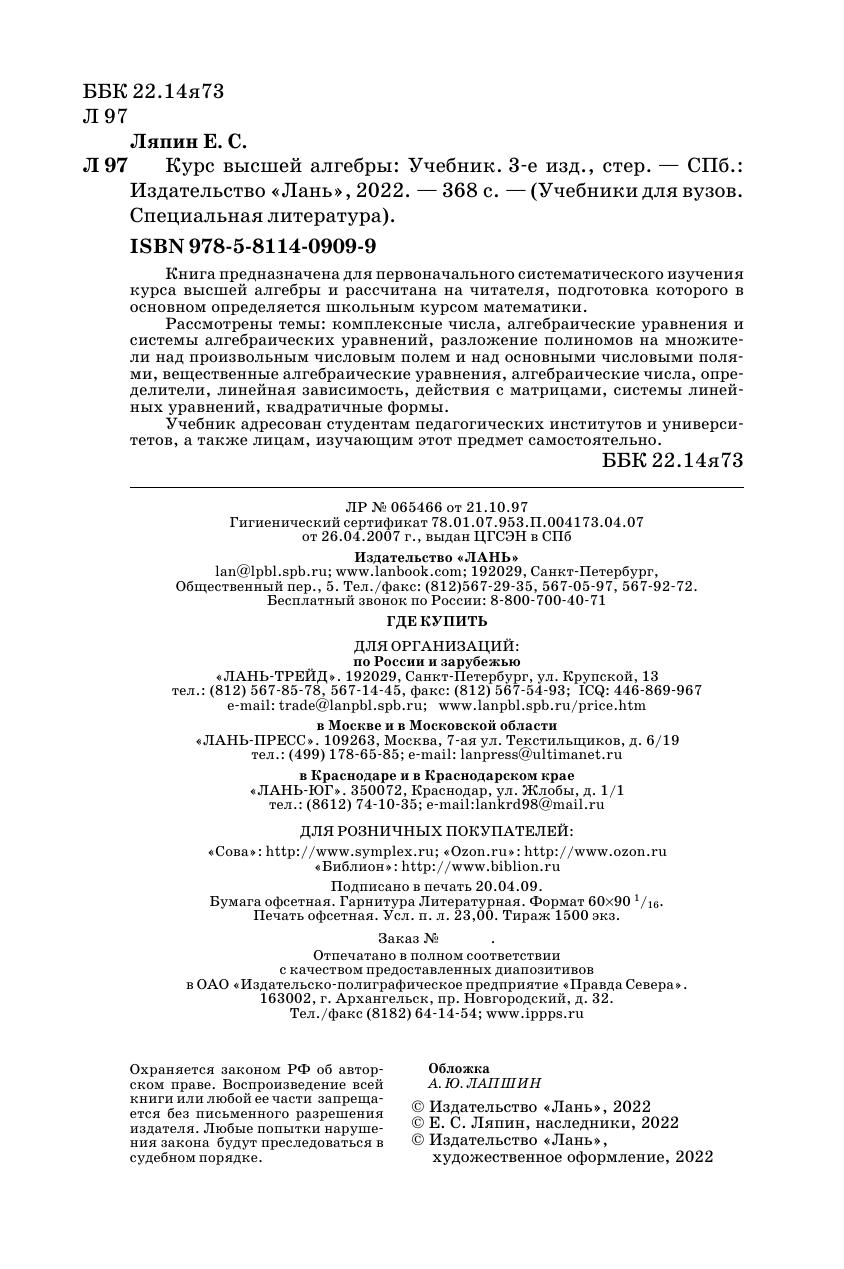 ISBN 978-5-8114-0909-9; 2022 г.